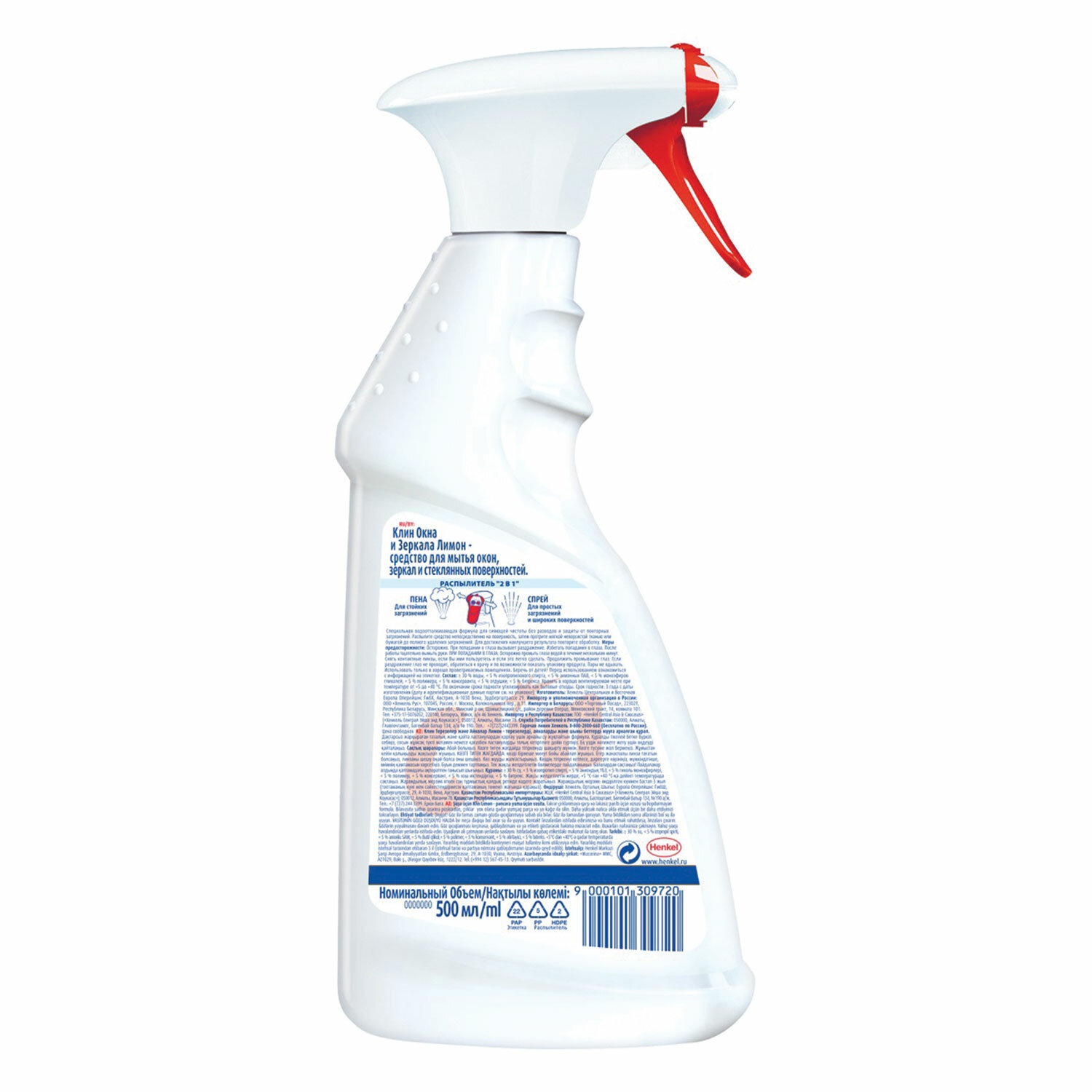 - Средство для мытья стекол и зеркал 500 мл, КЛИН "Лимон", распылитель, 2294288