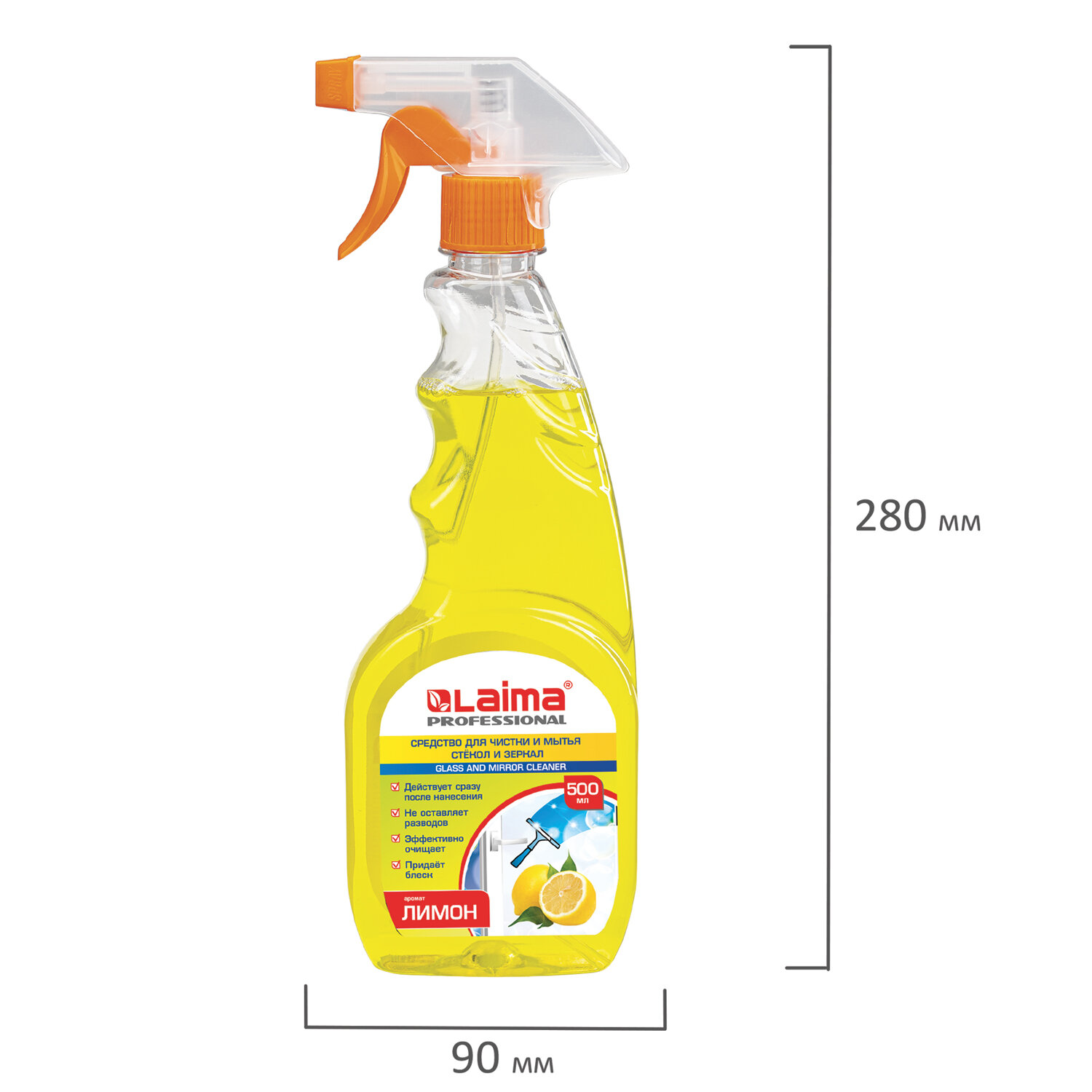 - Средство для мытья стекол и зеркал 500 мл, LAIMA PROFESSIONAL "Лимон", распылитель, 604652