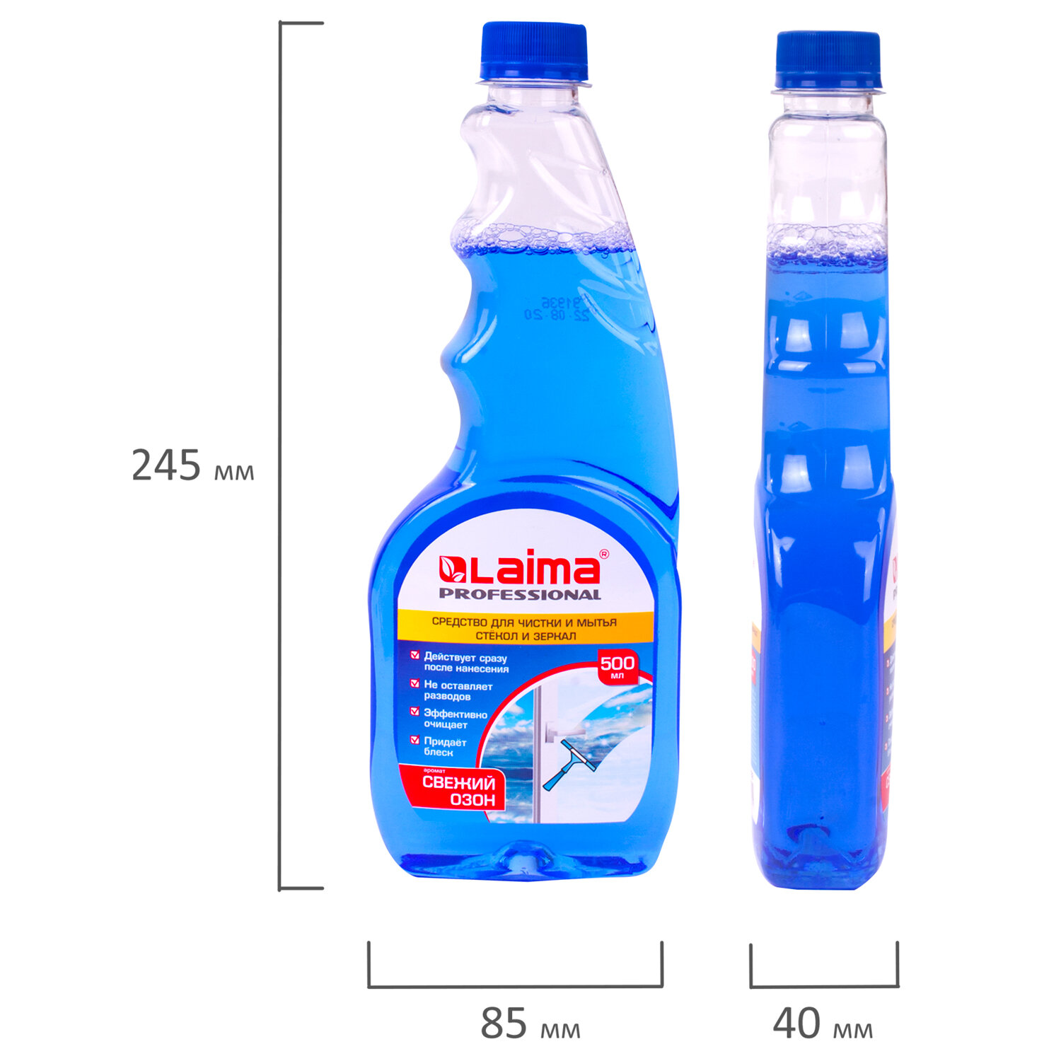 - Средство для мытья стекол и зеркал 500 мл LAIMA PROFESSIONAL, свежий озон, сменный блок, 606739