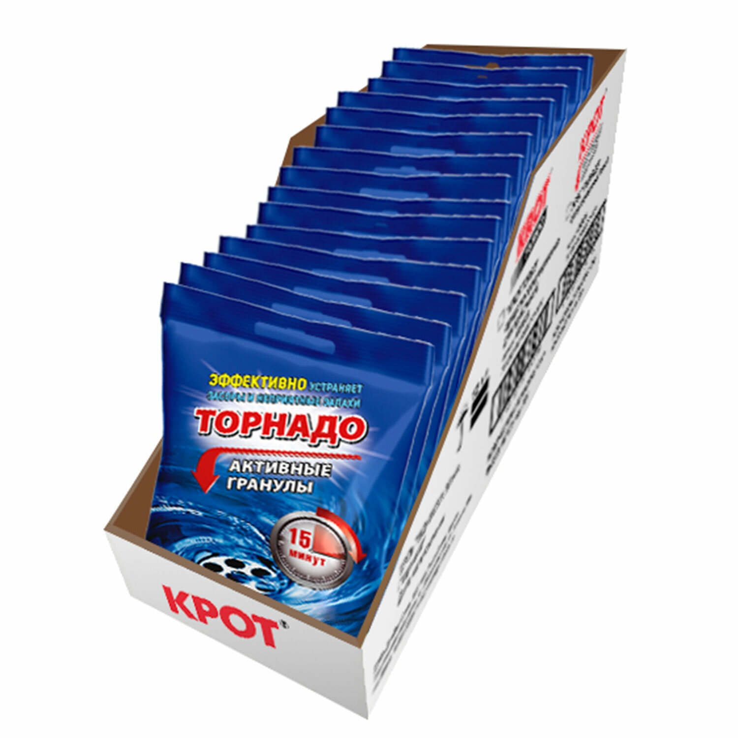 - Средство для прочистки канализационных труб в гранулах 70 г, КРОТ "Торнадо", активные гранулы, 4000029