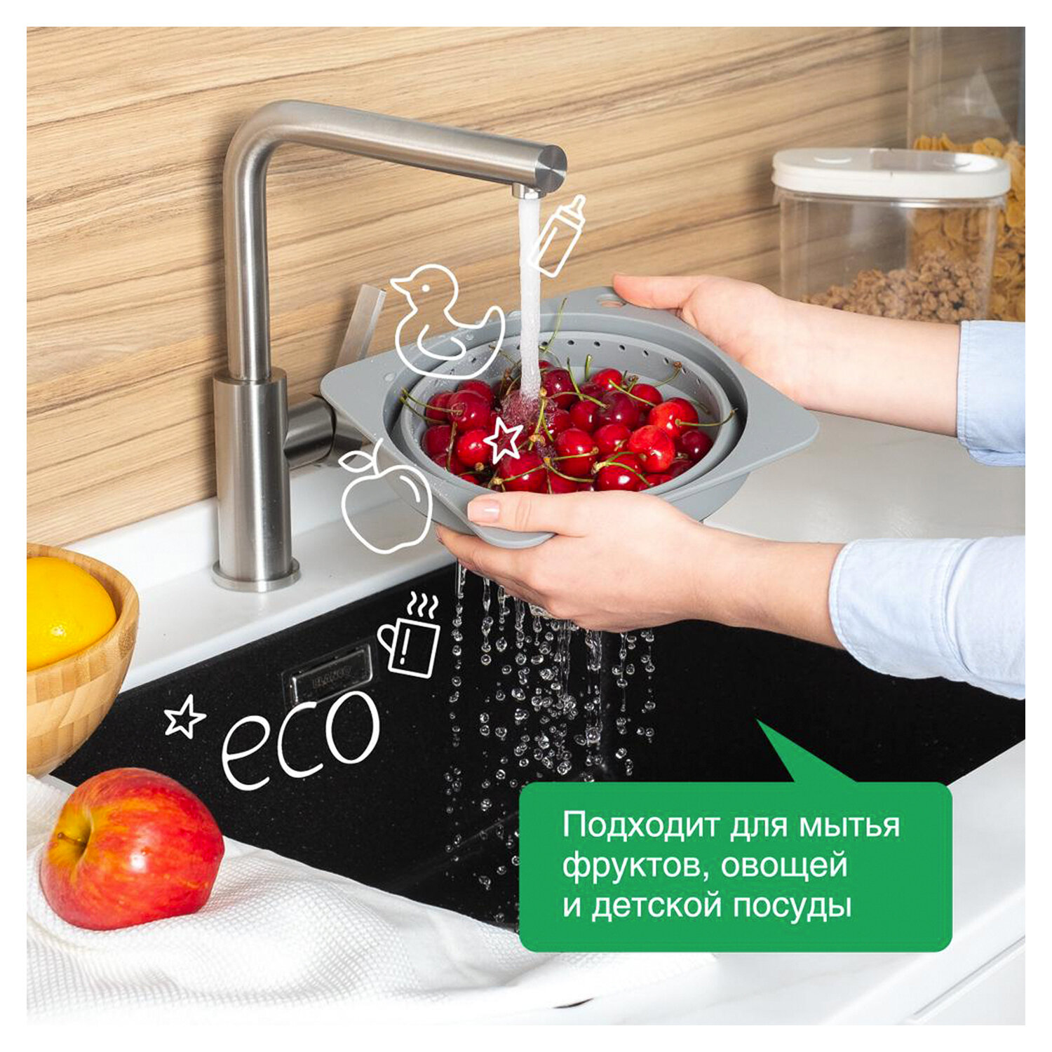 Биоразлагаемый концентрированный гель для посуды с антибактериальным эффектом SYNERGETIC – это экологичное, безопасное и эффективное средство для мытья всех видов посуды, в том числе детской, кухонного инвентаря и детских игрушек от любых видов загрязнений. Не оставляет следов на посуде. Мягкие биоразлагаемые тензиды из растительного масла обеспечивают хорошее пенообразование и эффективно удаляют жир и запахи даже в холодной воде. Растительный глицерин в составе средства защищает кожу рук от сухости и раздражения. Гипоаллергенная парфюмерная композиция с эфирными маслами аира, гальбанума, мяты, шалфея, лемонграсса и муската придает средству нежный и приятный аромат. Гипоаллергенный гель дерматологически протестирован в Европе. Международный экологический сертификат ICEA подтверждает биоразлагаемость, безопасность и эффективность средства. Биоразлагаемые компоненты не вредят микрофлоре септических установок. Попадая в среду септика, гель без труда распадается на простые соединения.