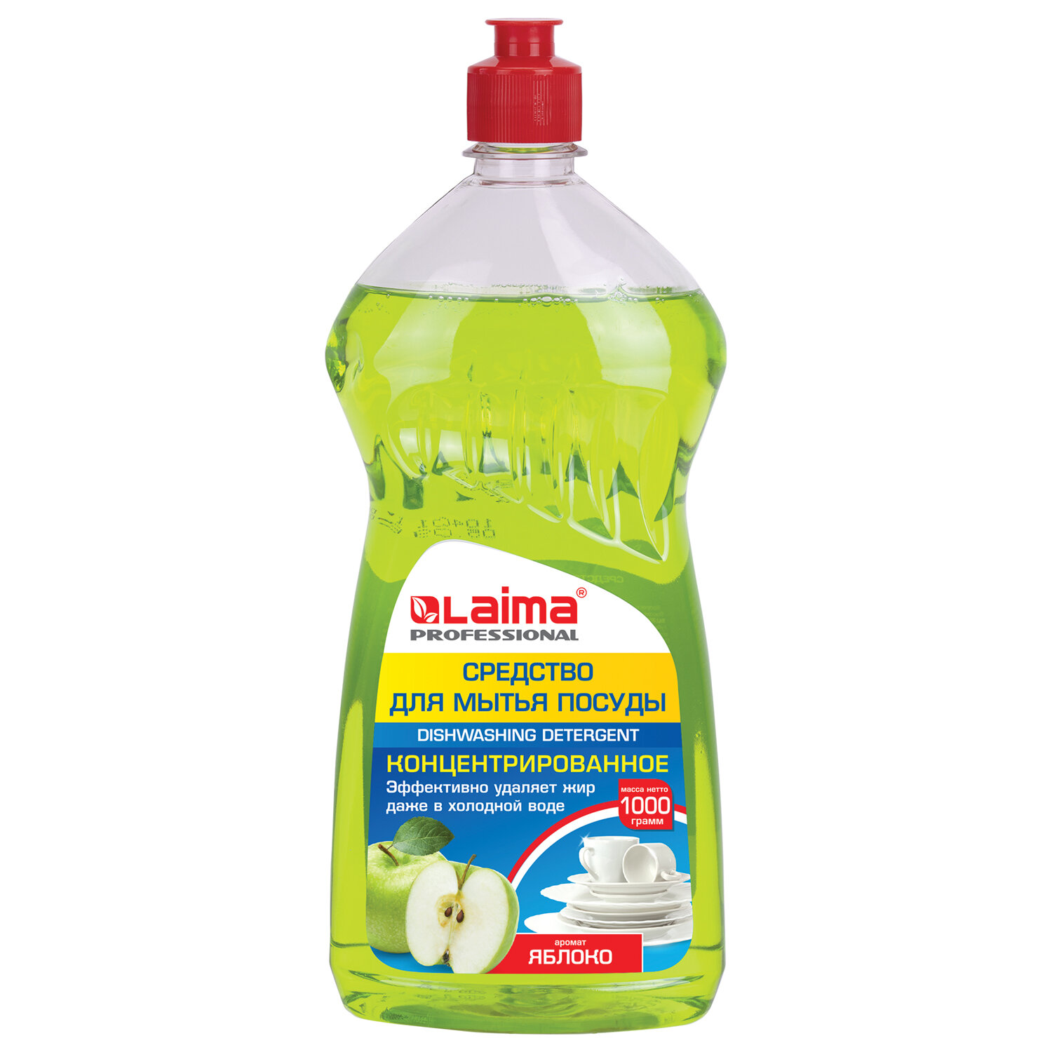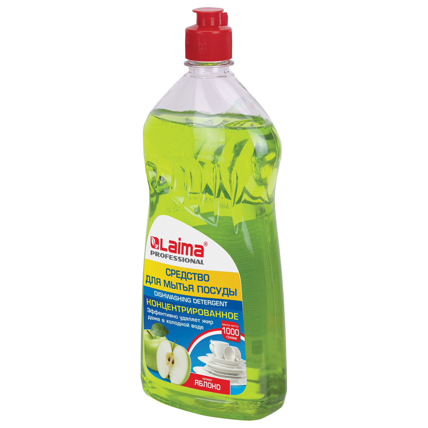 - Средство для мытья посуды 1 кг, LAIMA PROFESSIONAL, концентрат, "Яблоко", 604648