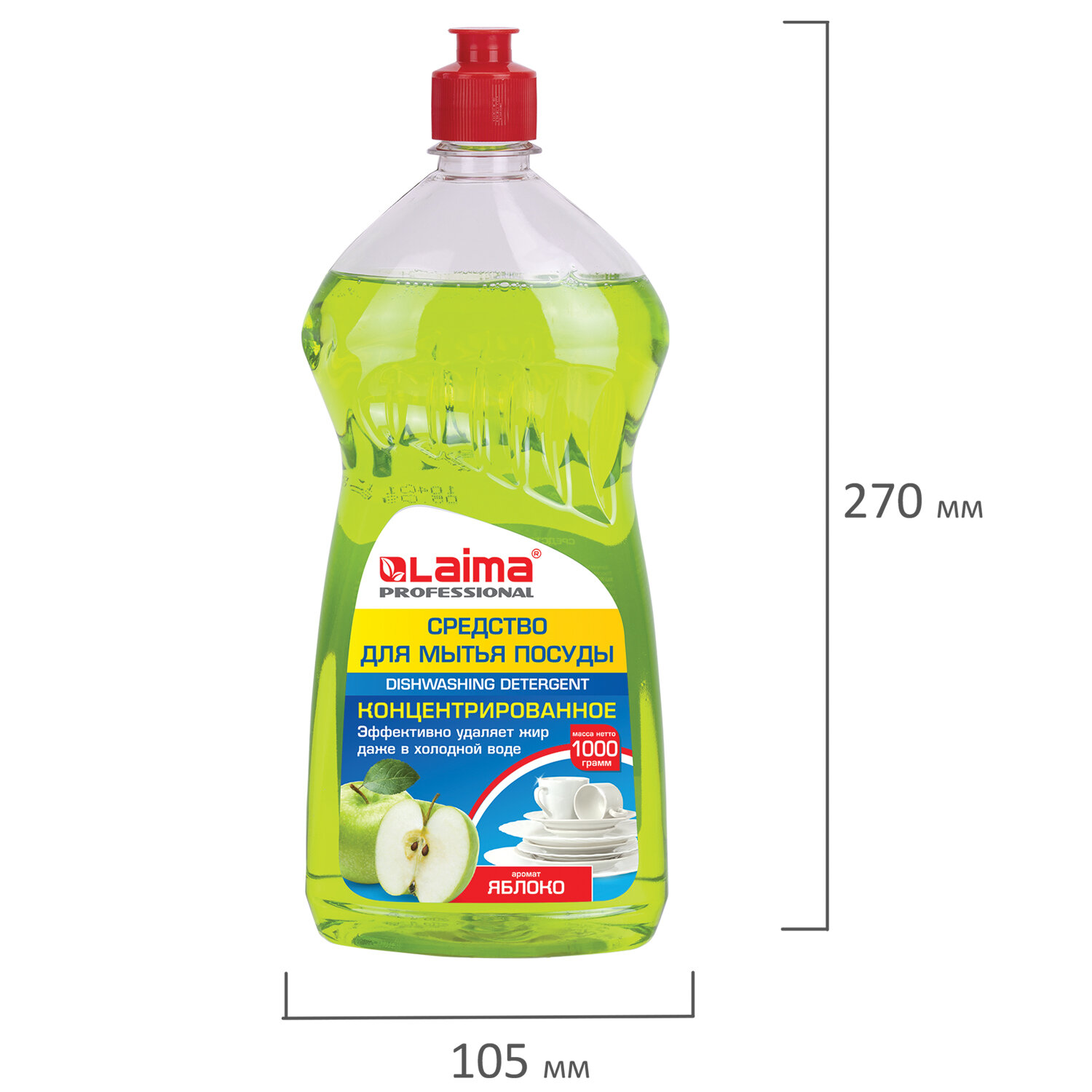 Средство для мытья посуды 1 кг, LAIMA PROFESSIONAL, концентрат, "Яблоко", 604648