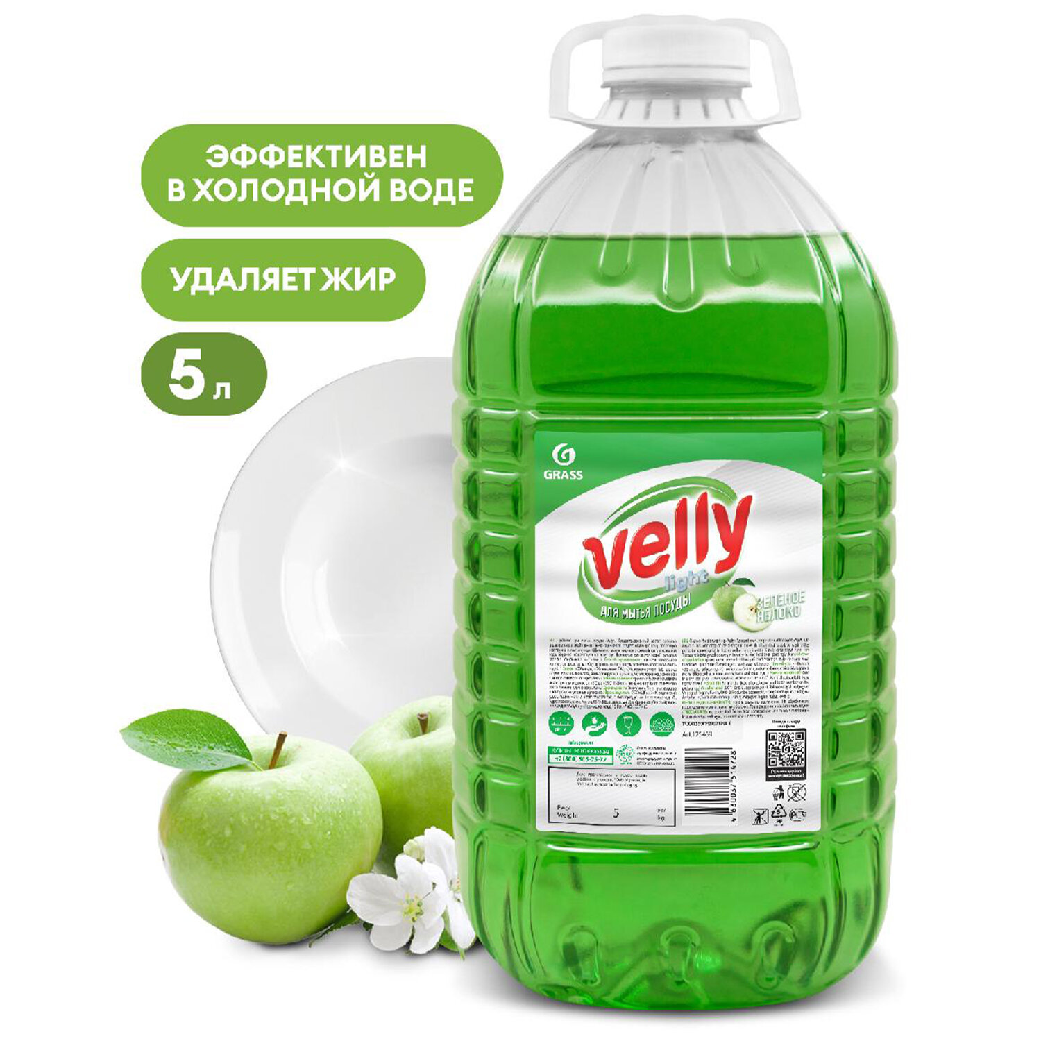 - Средство для мытья посуды 5 кг, GRASS VELLY "Яблоко", концентрат, ПЭТ, 125469