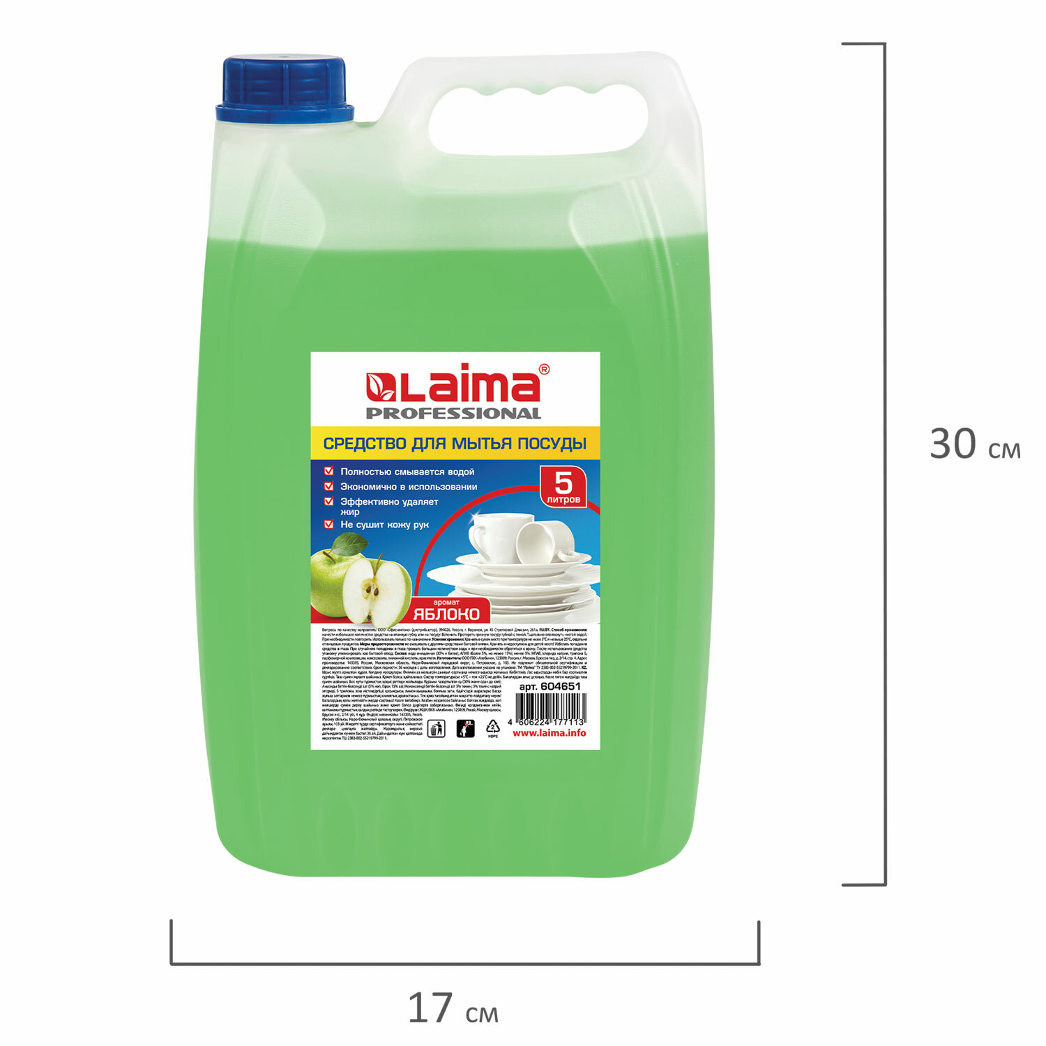- Средство для мытья посуды 5 л, LAIMA PROFESSIONAL, концентрат, "Яблоко", 604651