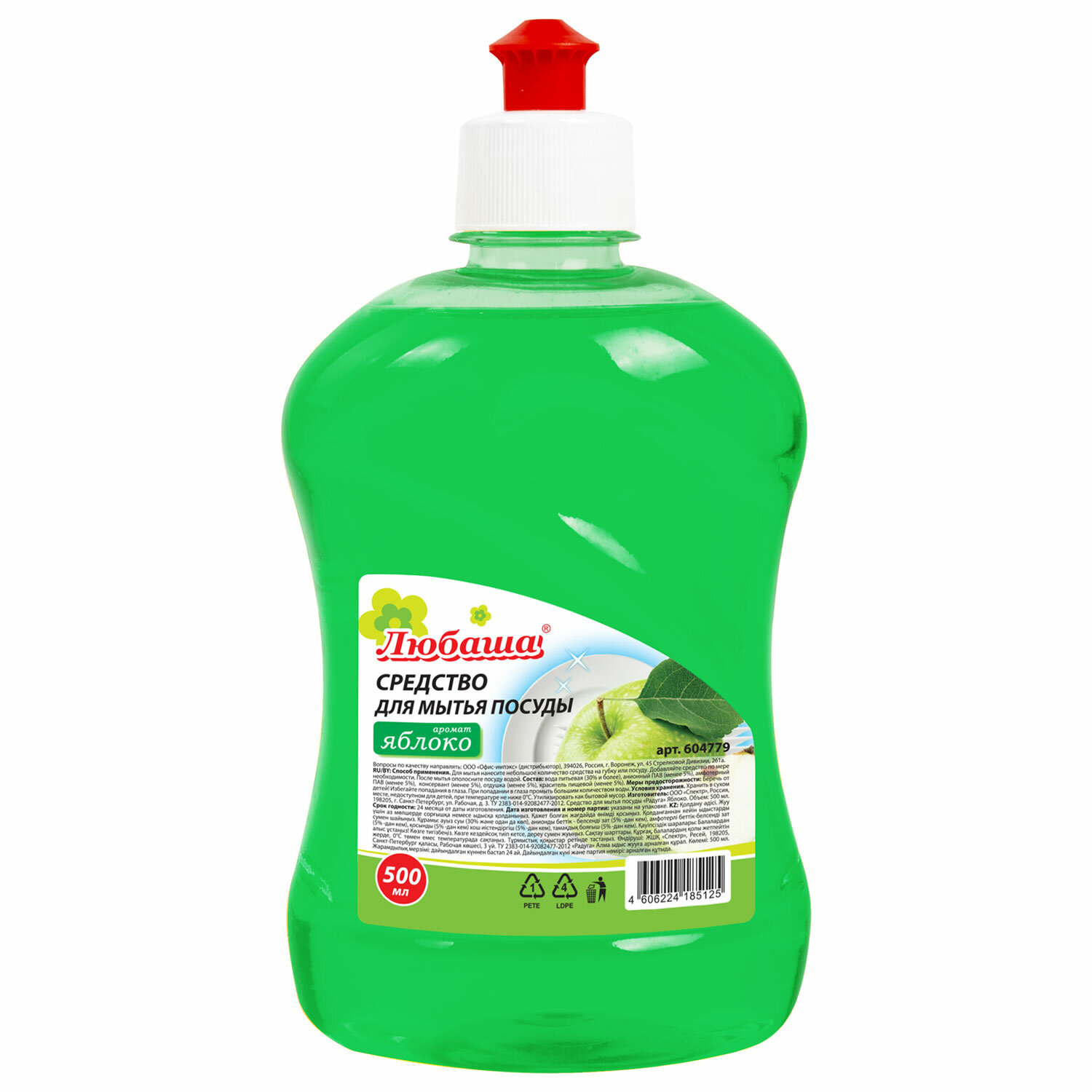 Средство для мытья посуды 500 мл, ЛЮБАША "Яблоко", пуш-пул, 604779