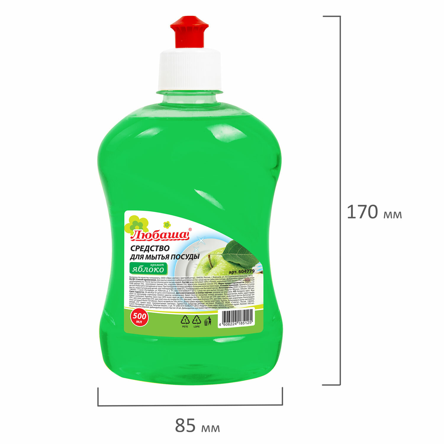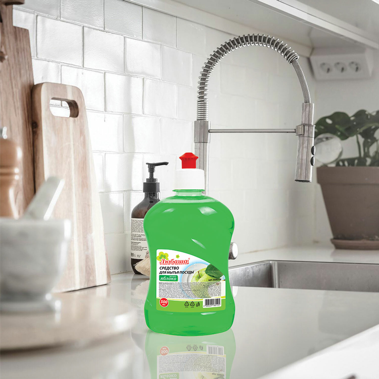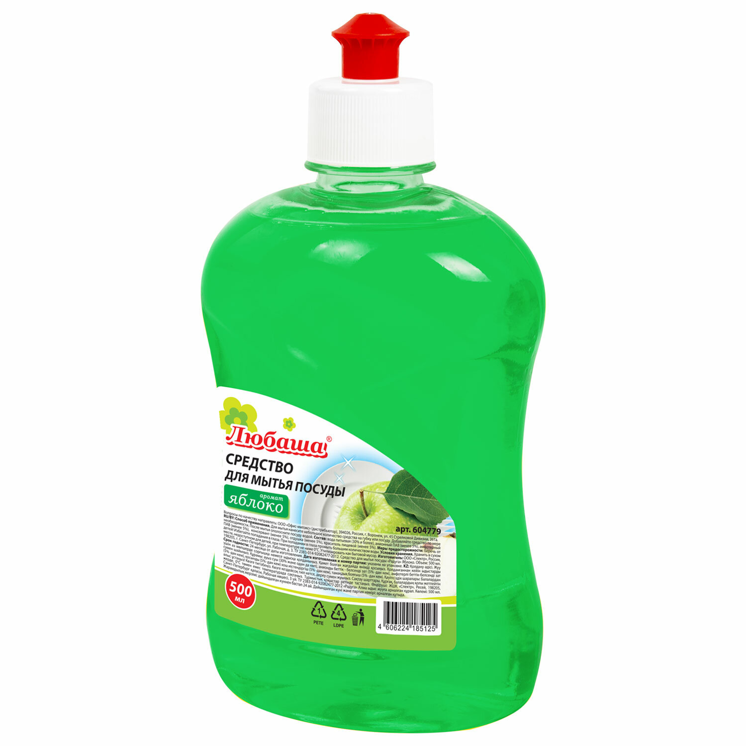 - Средство для мытья посуды 500 мл, ЛЮБАША "Яблоко", пуш-пул, 604779