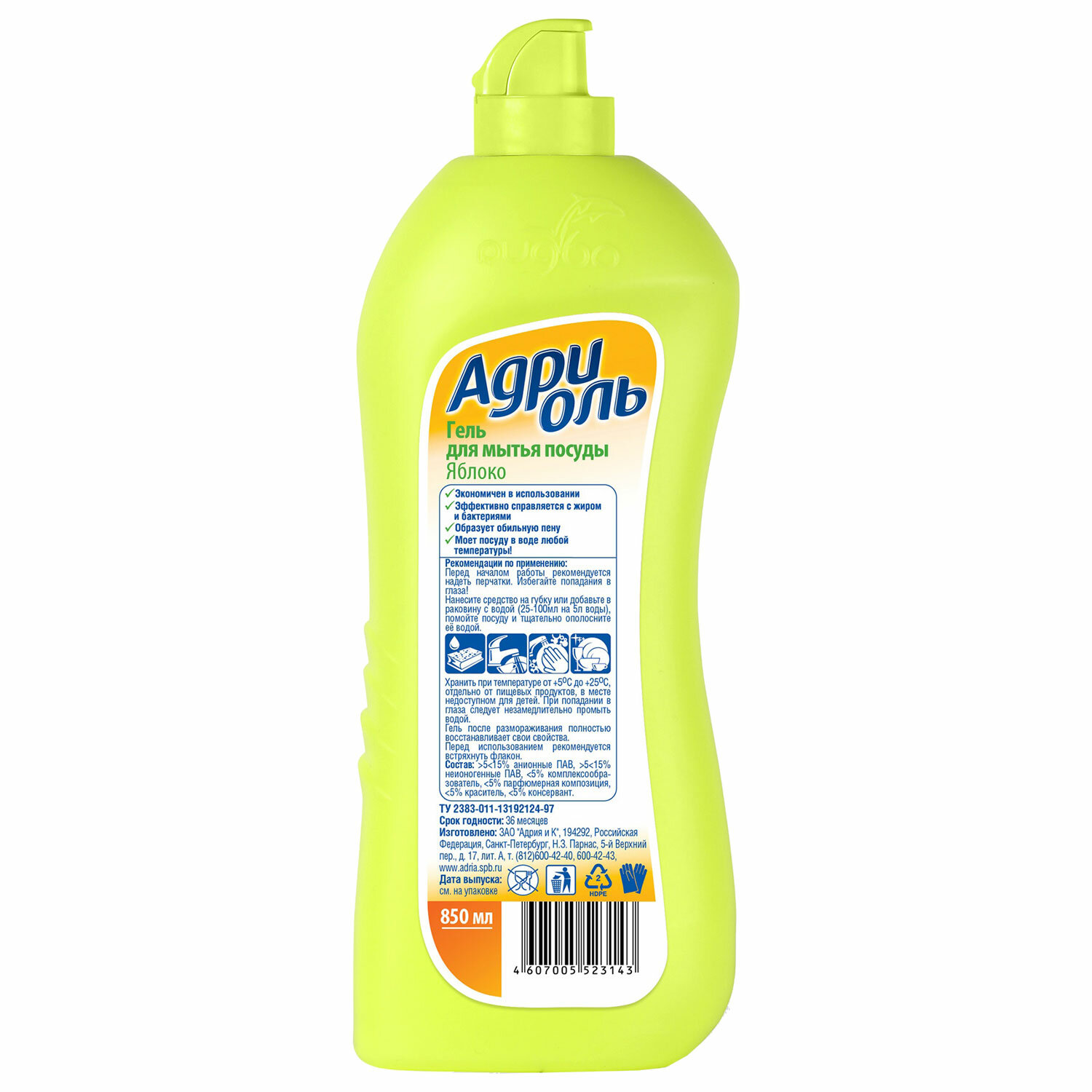 - Средство для мытья посуды 850 мл, АДРИОЛЬ "Яблоко", 4607005523143