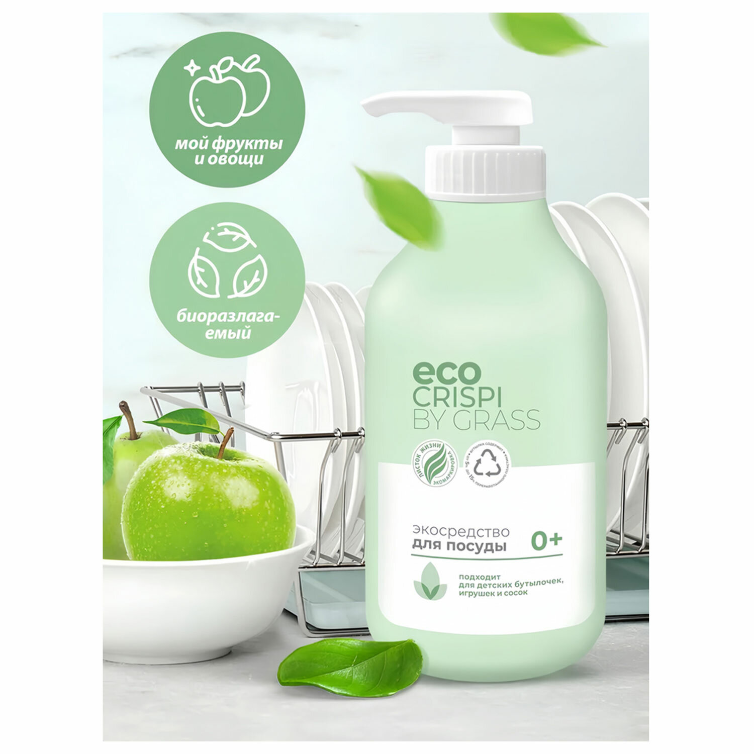 - Средство для мытья посуды, детской посуды, игрушек ЭКО 750 мл CRISPI by GRASS, 125721