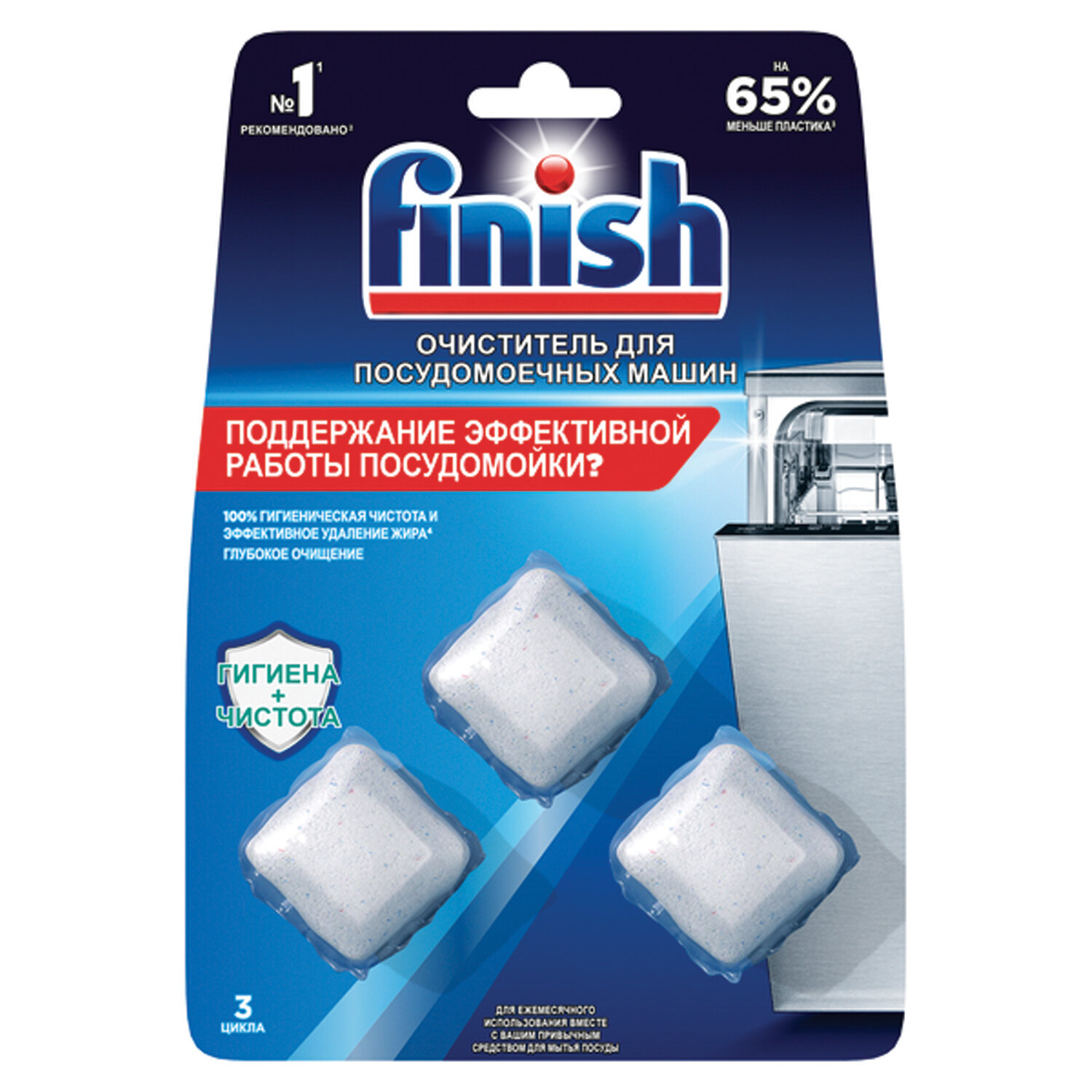 Вы обнаружили, что ваша посудомоечная машина моет посуду недостаточно эффективно? На внутренних частях вашей посудомоечной машины могут скапливаться жир и грязь, даже если внешне машина выглядит чистой. Для поддержания гигиены и чистоты вашей посудомоечной машины используйте очиститель FINISH в таблетках. Достаточно положить её перед запуском цикла на дно вашей посудомойки. Используйте ее одновременно с мытьем посуды раз в месяц (не забудьте при этом также использовать моющее средство FINISH).