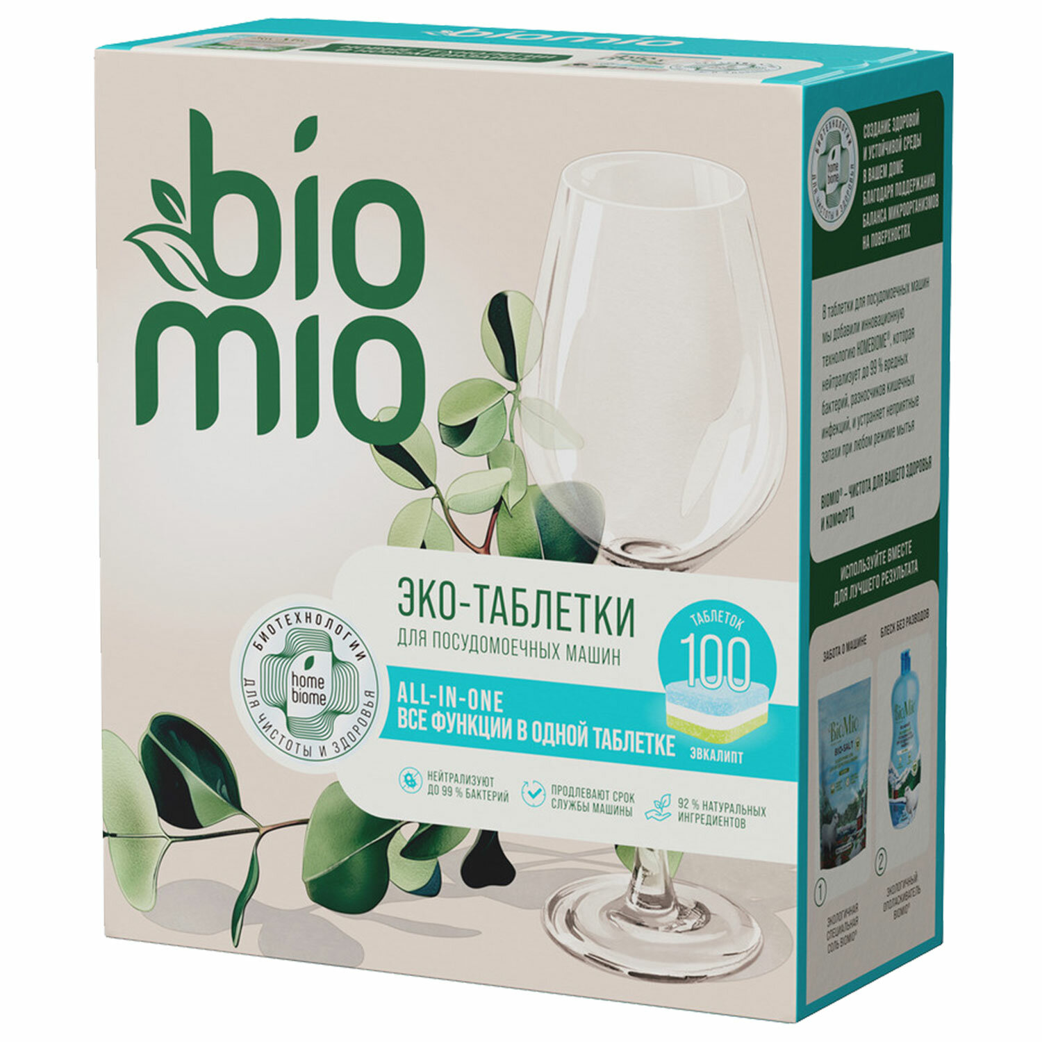 - Таблетки для посудомоечной машины 100 шт. BIOMIO "Эвкалипт", 510.73090.0101