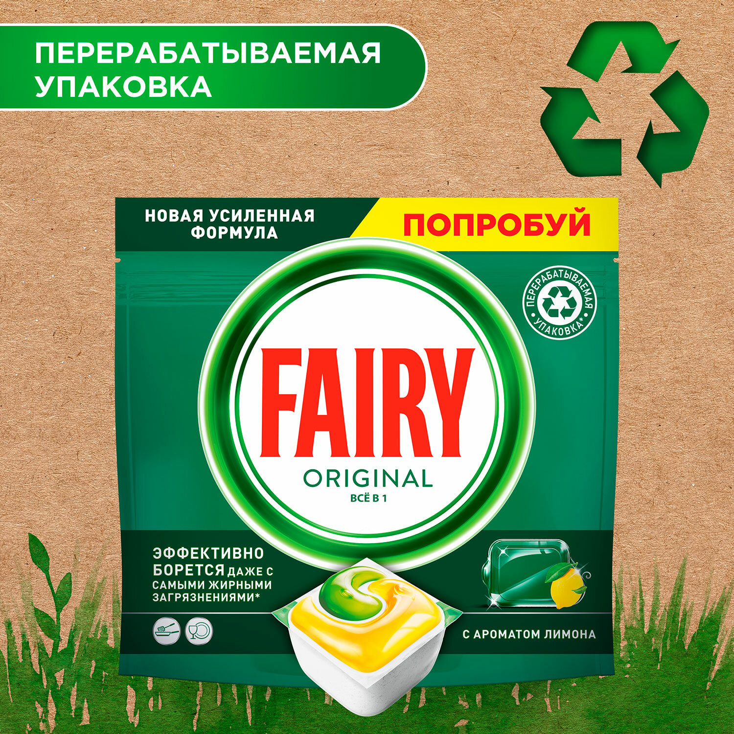 Капсулы FAIRY Original All in 1 с ароматом лимона удаляют сложные загрязнения с посуды с первого раза, придавая ей эффект суперсияния и приятный цитрусовый аромат. Многокамерные капсулы содержат гель и порошок, благодаря чему с первого раза отмывают даже сложные загрязнения с любой посуды и придают ей суперблеск.