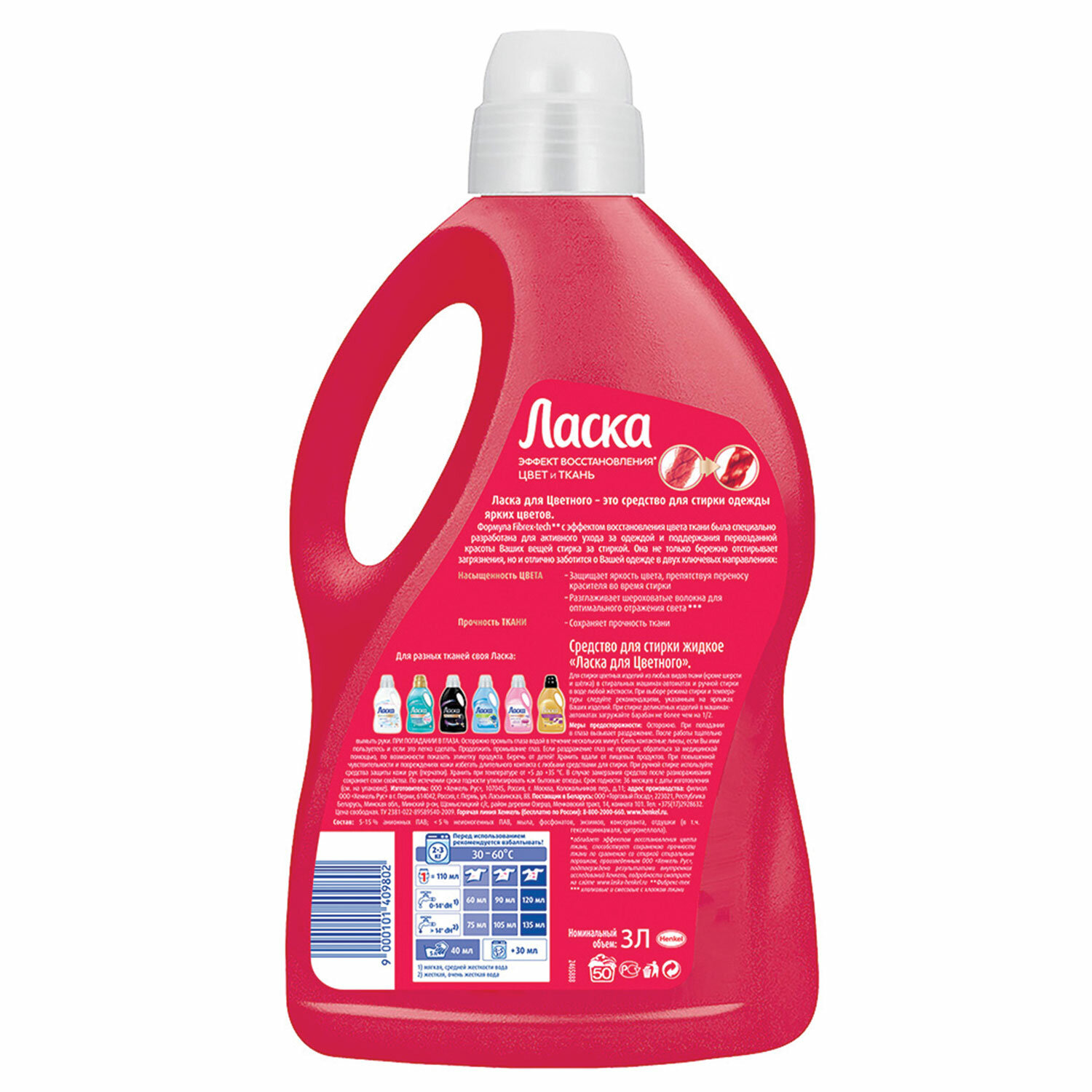 Ласка для цветного – это средство для стирки одежды ярких цветов. Формула Fibrex-tech* с эффектом восстановления цвета ткани была специально разработана для активного ухода за одеждой и поддержания первозданной красоты Ваших вещей стирка за стиркой. Она не только бережно отстирывает загрязнения, но и отлично заботится о Вашей одежде в двух ключевых направлениях: