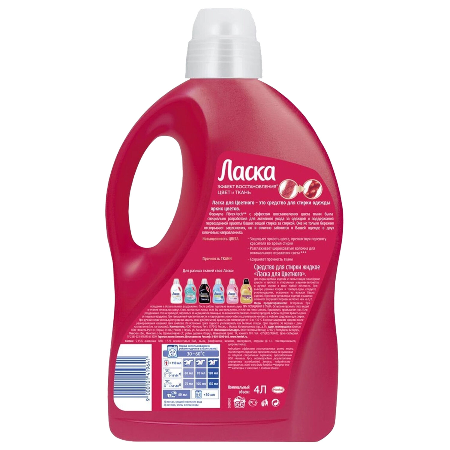 Специальная формула Fibrex-tech (Фибрекс-тек) жидкого средства для стирки ЛАСКА не только бережно отстирывает загрязнения, но и отлично заботится о Вашей одежде в двух ключевых направлениях: насыщенность цвета и прочность ткани.