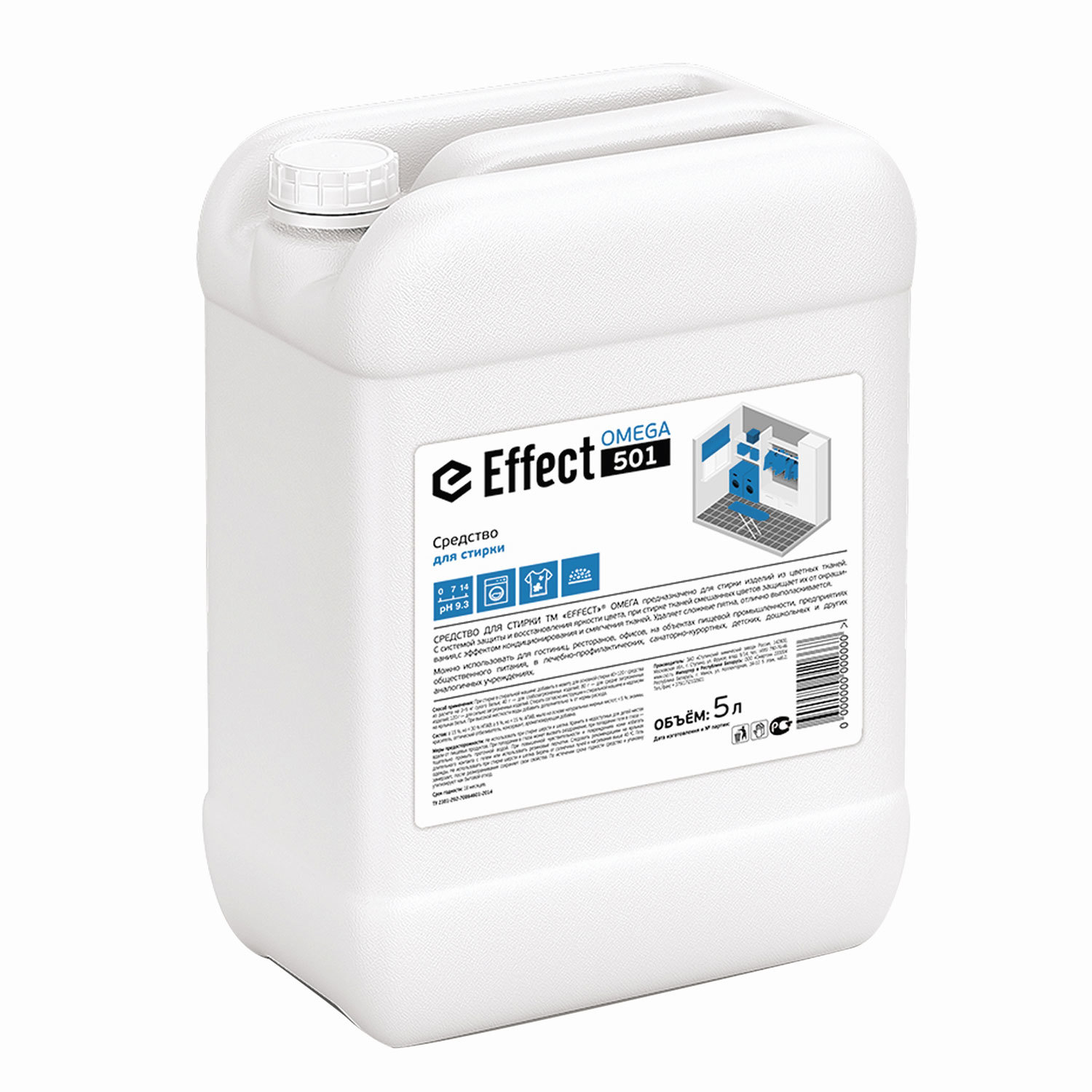 - Средство для стирки жидкое универсальное 5 кг, EFFECT "Omega 501", для цветных тканей, 10734