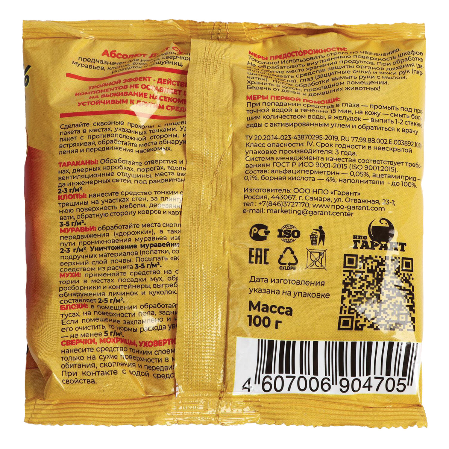 - Средство от насекомых 100 г, АБСОЛЮТ ДУСТ СУПЕР, пакет, АДС100