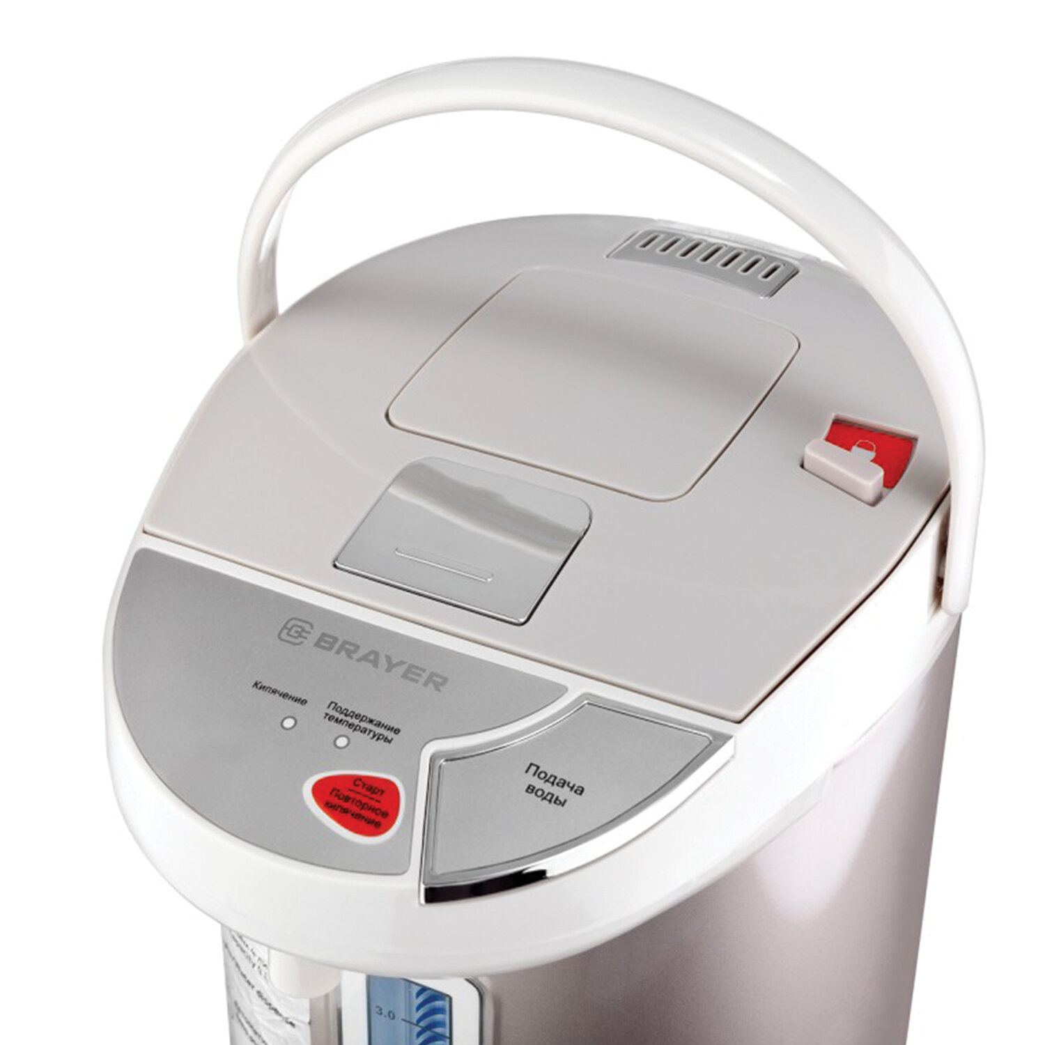 Производитель оставляет за собой право без предварительного уведомления вносить изменения в технические характеристики, комплектацию и конструкцию, не ухудшающие эксплуатационные характеристики изделия. Термопот на 4 литра, 3 режима подачи воды, BRAYER BR1092, 900 Вт, 1 температурный режим