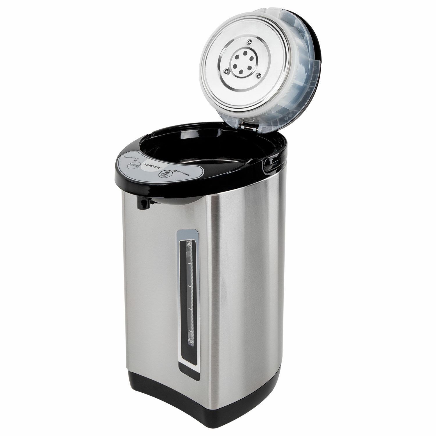 Термопот SONNEN TP-60, 6 л, 900 Вт, 1 температурный режим, 3 режима подачи воды, сталь, черный/серебро, 456713