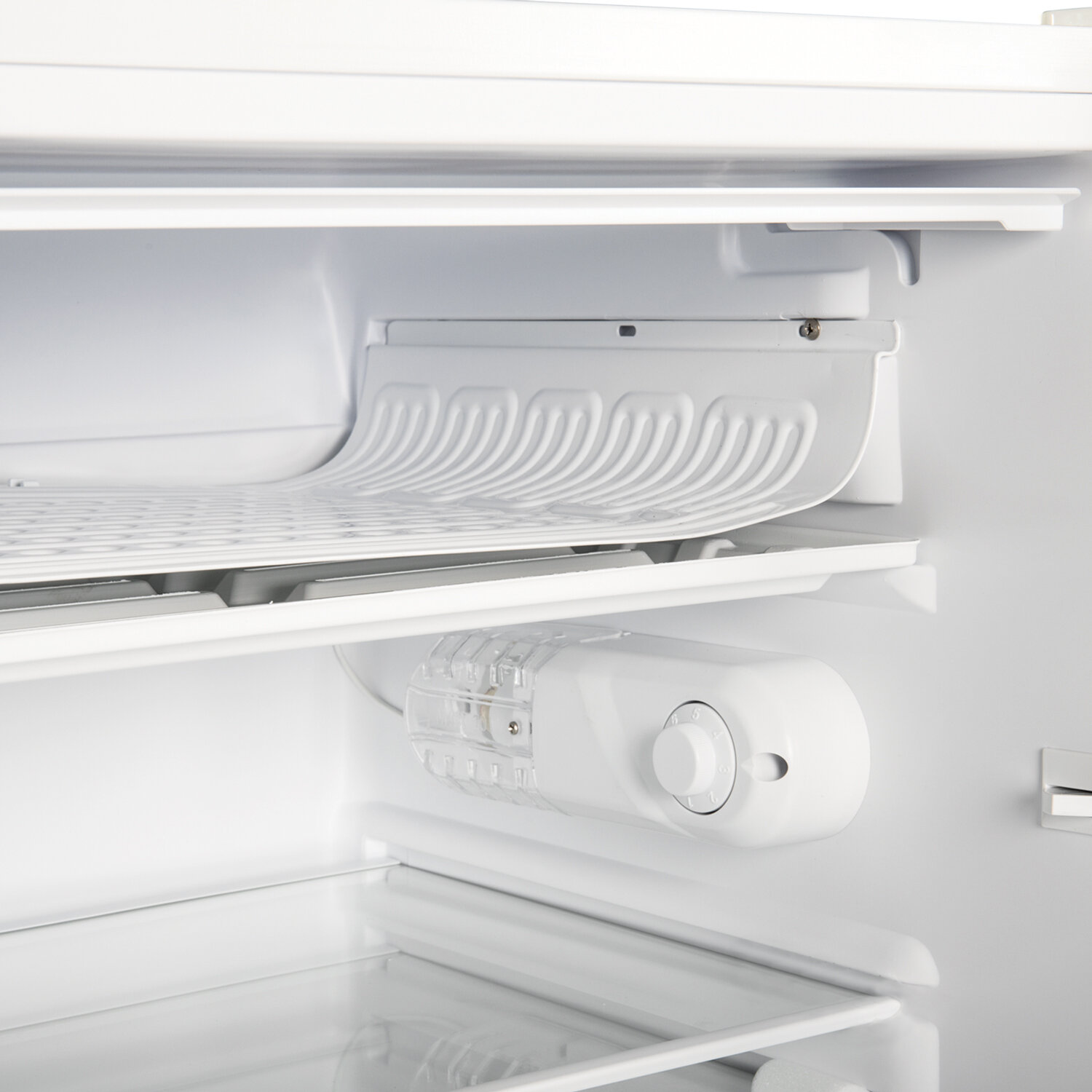 Полезный объем холодильника составляет 125 л. Данная модель включает в себя 2 полки в основной камере, небольшую морозильную камеру и 3 компактные полки в дверце холодильника. В основной камере расположена полочка для хранения продуктов, выполненная из закаленного стекла. Объем морозильной камеры составляет 15 л, что идеально подходит для нескольких порций мороженого или 4 бутылок воды. Дополнительно в данной модели есть возможность перевешивания двери, инструкция описана в руководстве пользователя.