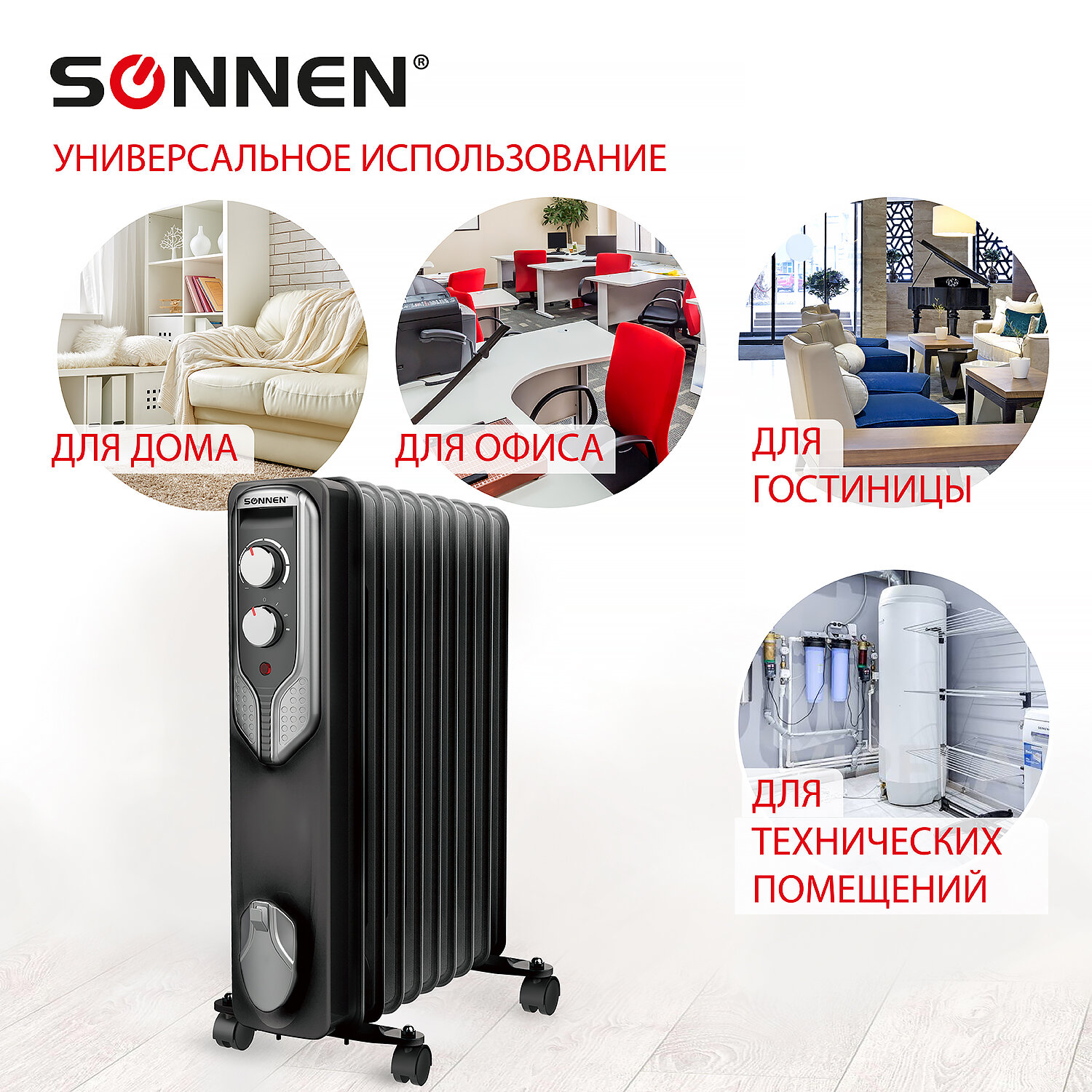 - Обогреватель масляный SONNEN DFN-09BL, 2000 Вт, 9 секций, черный, 455311