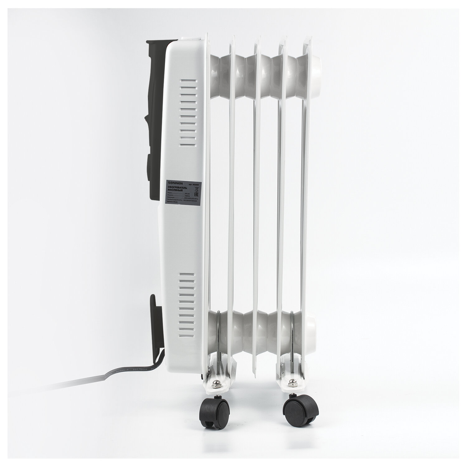 - Обогреватель масляный SONNEN DFS-05, 1000 Вт, 5 секций, белый, 453497