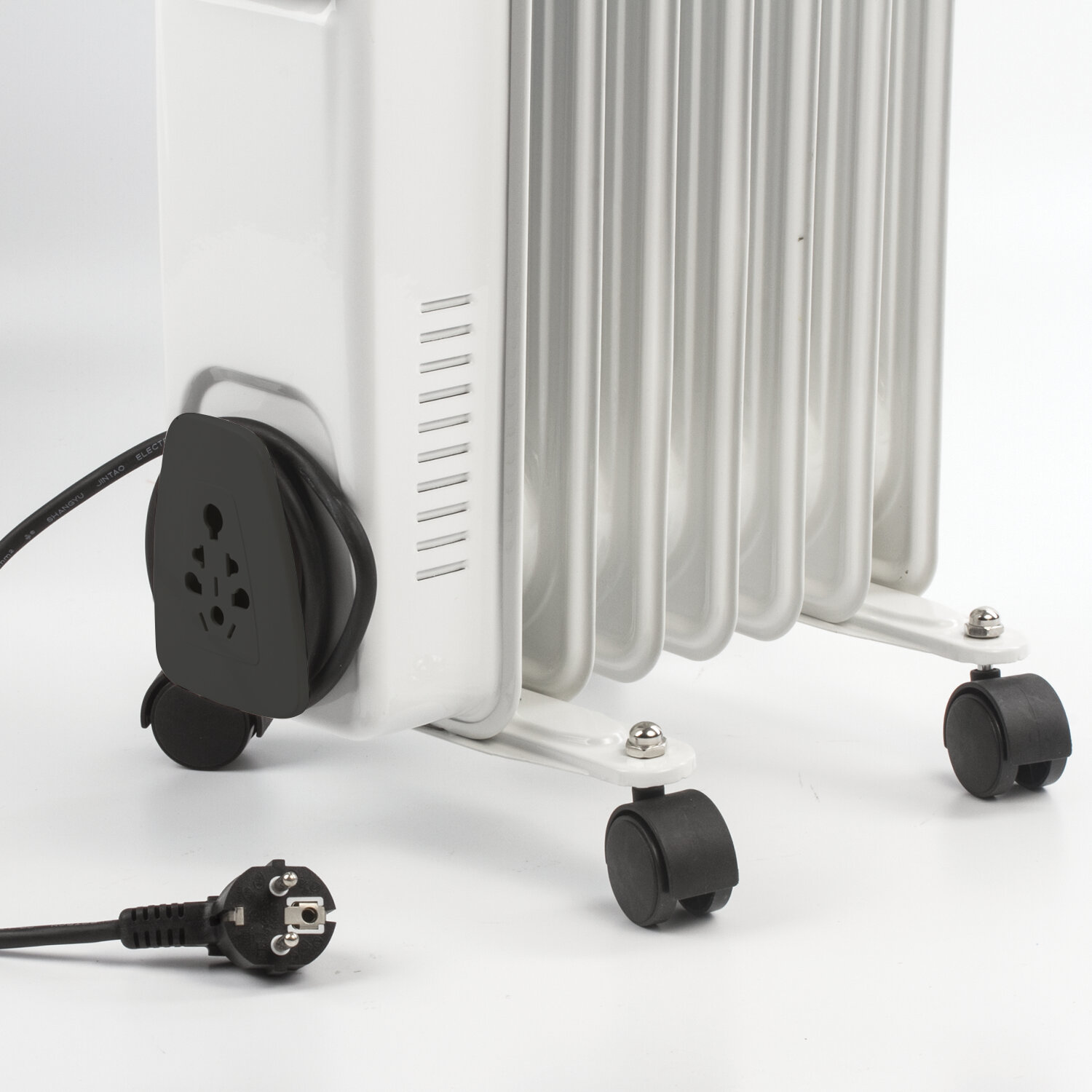 Обогреватель оборудован интуитивно простым механическим управлением. Состоит из 7 секций и обладает мощностью 1500 Вт. Выключатель оснащен световым индикатором с блоком регулировки температуры. Обогреватель безопасен в эксплуатации, не сжигает кислород в помещении и обладает функцией защиты от перегрева, оборудован встроенным термостатом, имеет 3 температурных режима, а также индикатор режимов работы. Подключается к бытовой электрической сети. Обогреватель можно свободно перемещать при помощи колес и удобной ручки, предусмотрено место для хранения шнура. Может быть размещен в любом удобном месте. Обогреватель масляный SONNEN DFS-07, 1500 Вт, 7 секций, белый, 453498