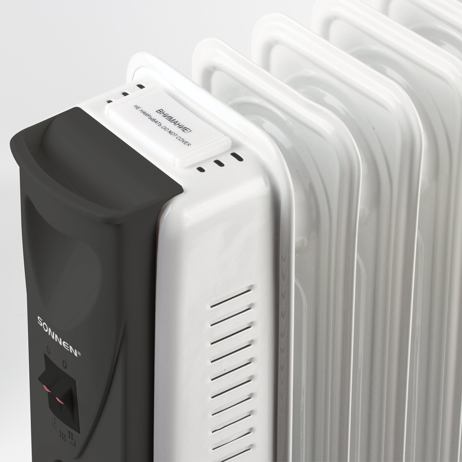 - Обогреватель масляный SONNEN DFS-09, 2000 Вт, 9 секций, белый, 453499