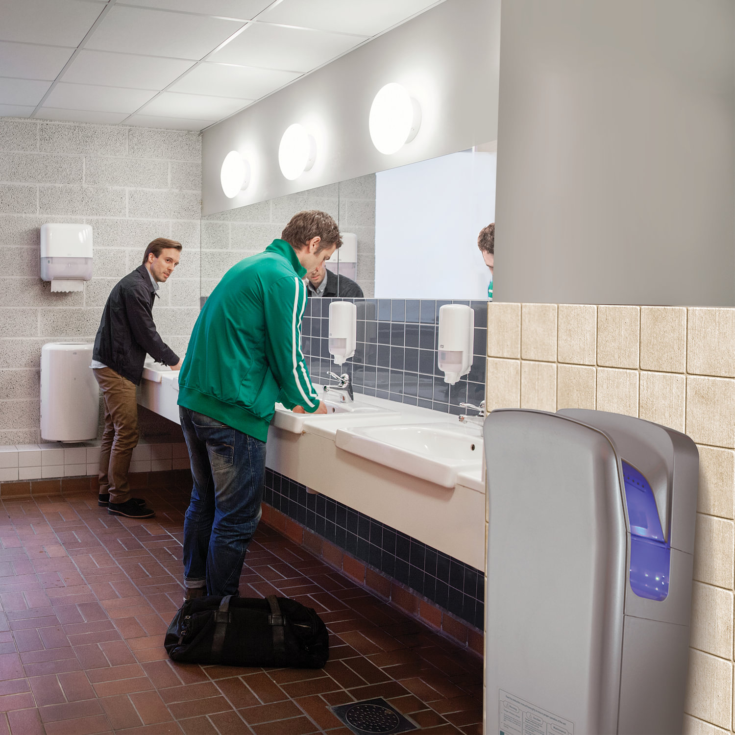 Руки становятся сухими за 5-7 секунд. Такой результат достигается благодаря высокой скорости воздушного потока и уникальной технологии подачи воздуха. Мощный двигатель создает поток воздуха скоростью до 95 м/с, который разделяется на две плоских струи так, что он фактически сдувает капли воды с рук за считанные секунды!