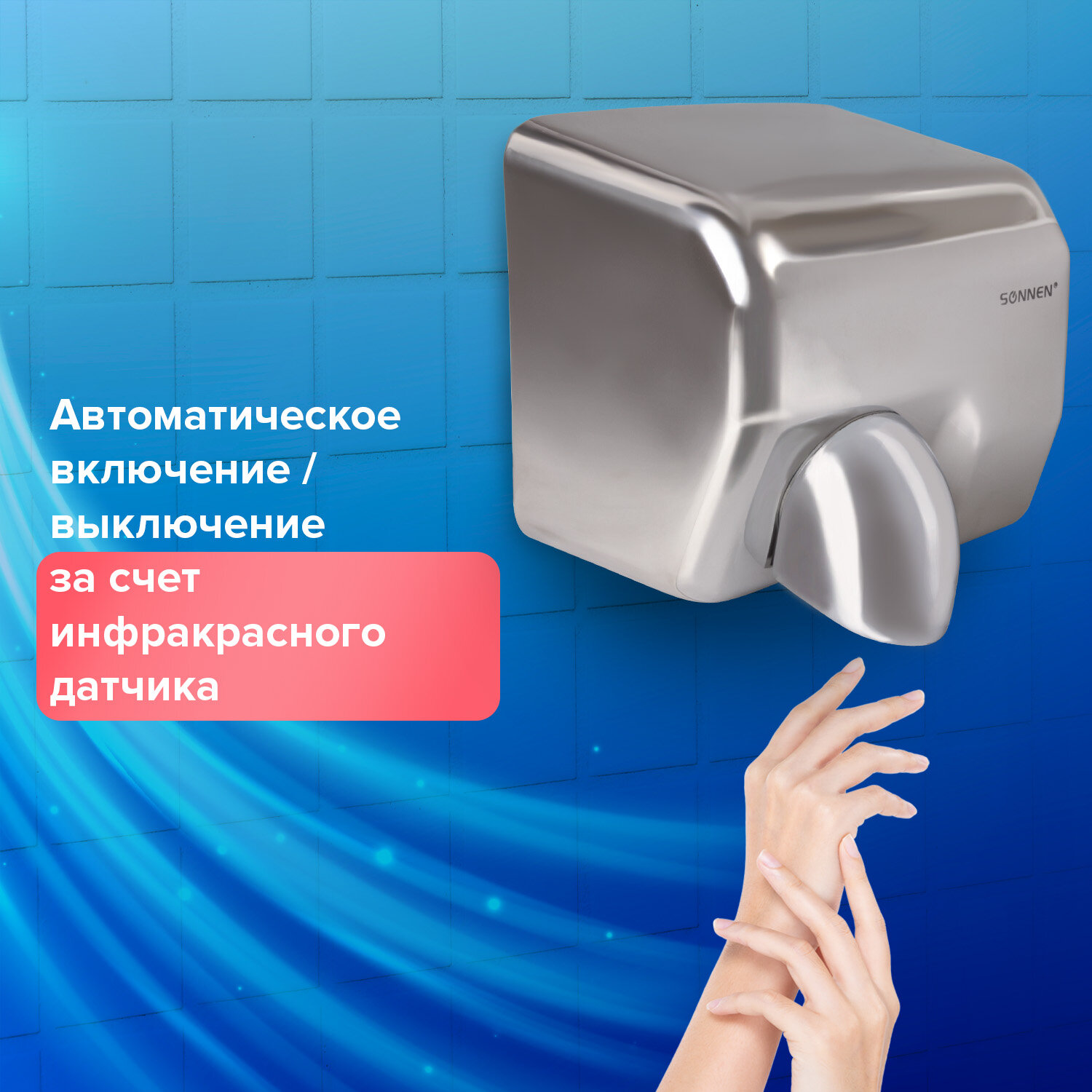 - Сушилка для рук SONNEN HD-798S, 2300 Вт, нержавеющая сталь, антивандальная, серебристая, 604194