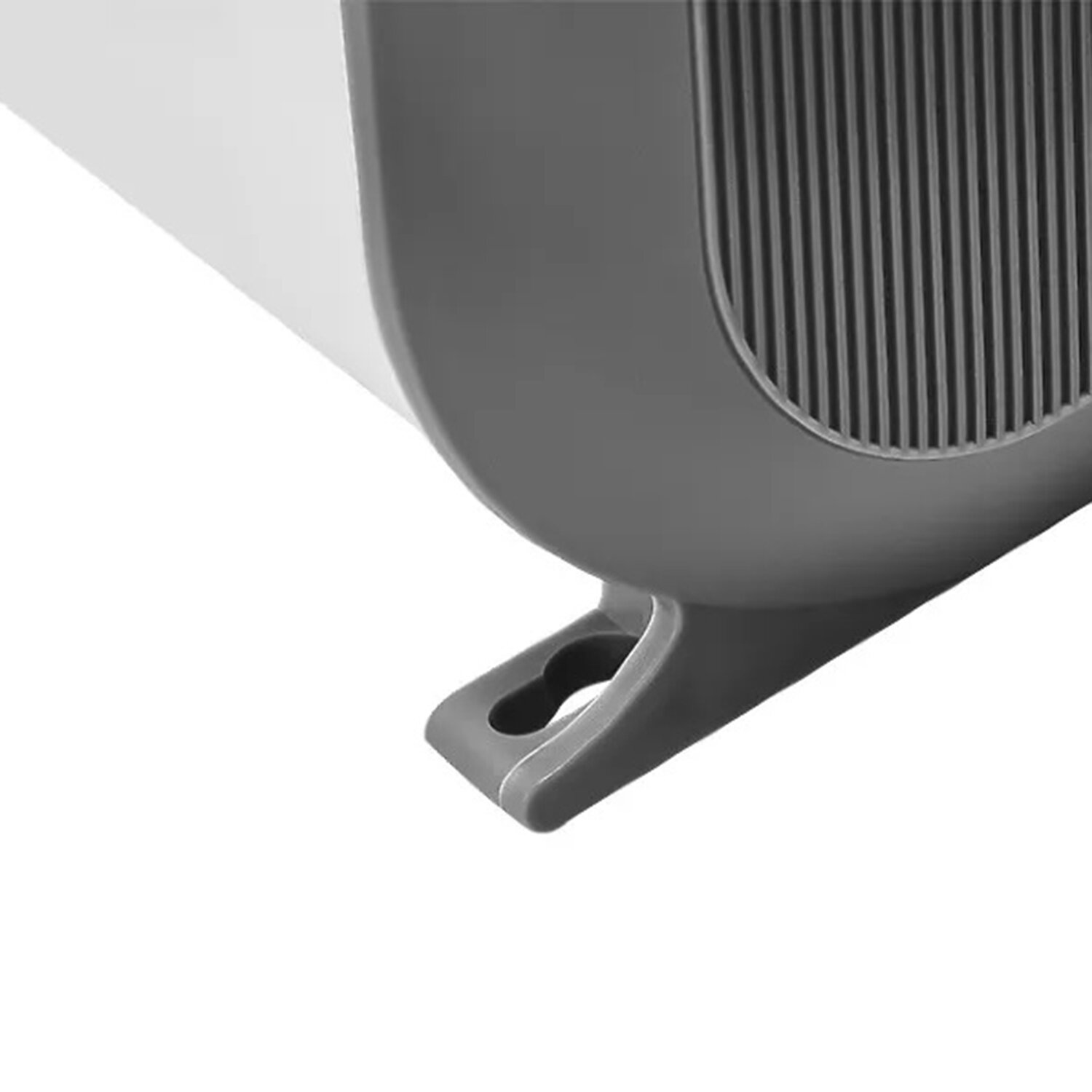 Передняя панель без перфорации блокирует распространение шума от вентиляционных колес, направляя его в потолок, а не в проходящих людей, что делает завесу значительно тише аналогов в классическом корпусе.