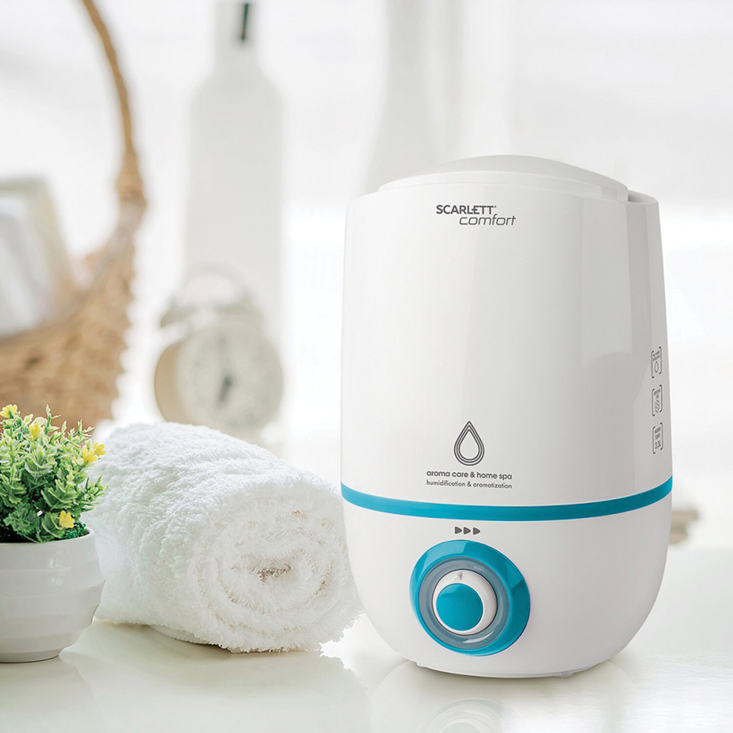 Ультразвуковой увлажнитель воздуха Scarlett SC-AH986M16 также обладает функциями автоматического отключения и ароматизации. Индикатор низкого уровня воды позволяет контролировать состояние увлажнителя и своевременно доливать воду.