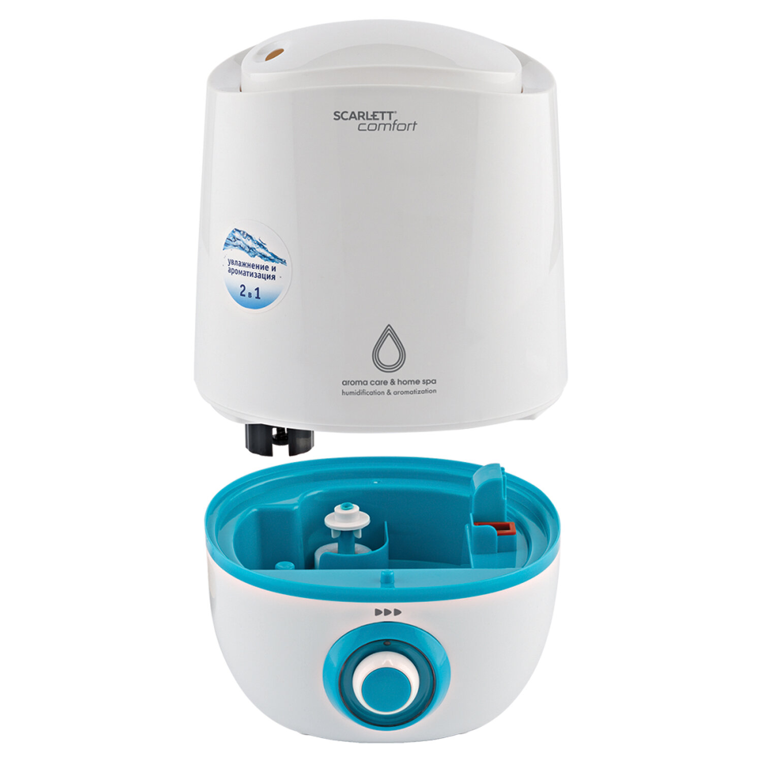 - Увлажнитель воздуха SCARLETT SC-AH986M16, объем бака 2,3 л, 23 Вт, арома-контейнер, белый