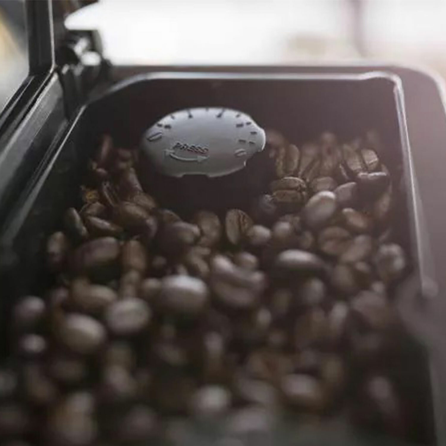 Кофемолка адаптирована по системе SAS, которая обеспечивает стабильность помола любого сорта кофе независимо от уровня влажности в помещении. Она оснащена жерновами с большим диаметром, осуществляющими качественный помол зернового кофе.