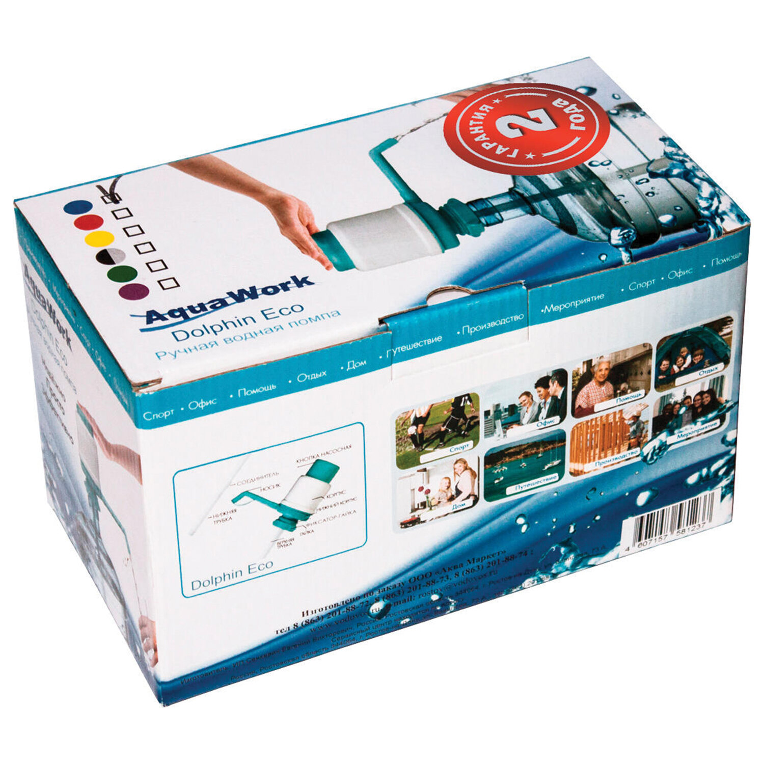 Производитель оставляет за собой право без предварительного уведомления вносить изменения в технические характеристики, комплектацию и конструкцию, не ухудшающие эксплуатационные характеристики изделия. Помпа для воды AQUA WORK Дельфин Эко, механическая, для бутылей 12-19 л, 20071