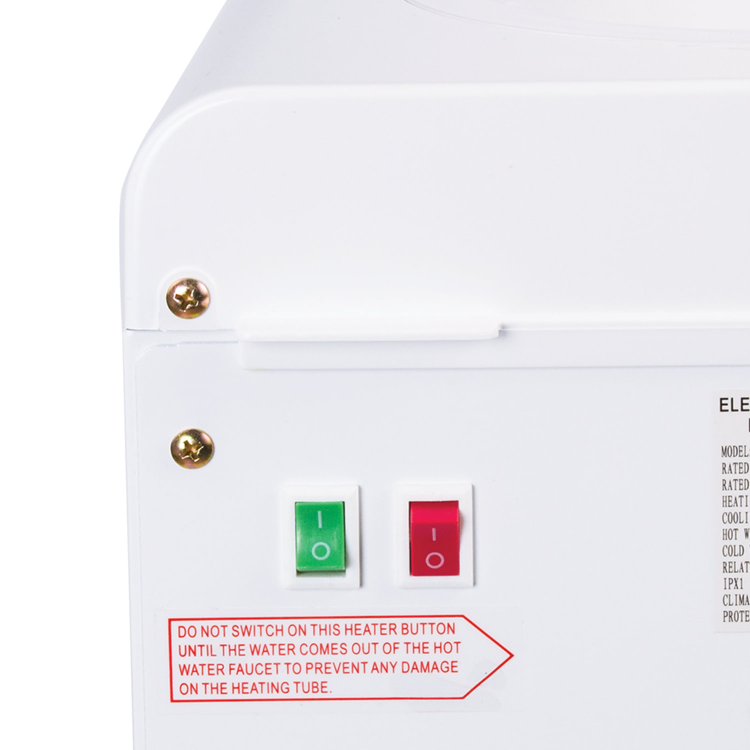 Вода нагревается с помощью ТЭНа мощностью 550 Вт, что позволяет достичь температуры 90 °С за считанные минуты. Модуль электронного охлаждения мощностью 70 Вт обеспечивает поддержание температуры холодной воды на уровне 10 °С. Кулер предназначен для напольного размещения и имеет 2 крана типа t;нажим кружкойt;, а также защиту от протечек воды. Материал корпуса представляет собой сочетание металла и пластика. Для использования необходимо поместить бутыль в специальное отверстие в верхней части диспенсера. Перед первым использованием необходимо слить около 1 л воды, чтобы очистить накопительный бак и трубки от скопившейся производственной пыли. Для нагревания требуется в разы меньше электроэнергии, чем для нагревания самого обычного электрического чайника. Благодаря тому, что высокая температура воды в кулере поддерживается постоянно, больше не нужно будет ждать, пока он нагреется, что особенно важно для крупных компаний с большим количеством сотрудников и посетителей. Кулер для воды SONNEN FS-01, напольный, НАГРЕВ/ОХЛАЖДЕНИЕ ЭЛЕКТРОННОЕ, 2 крана, белый, 452419