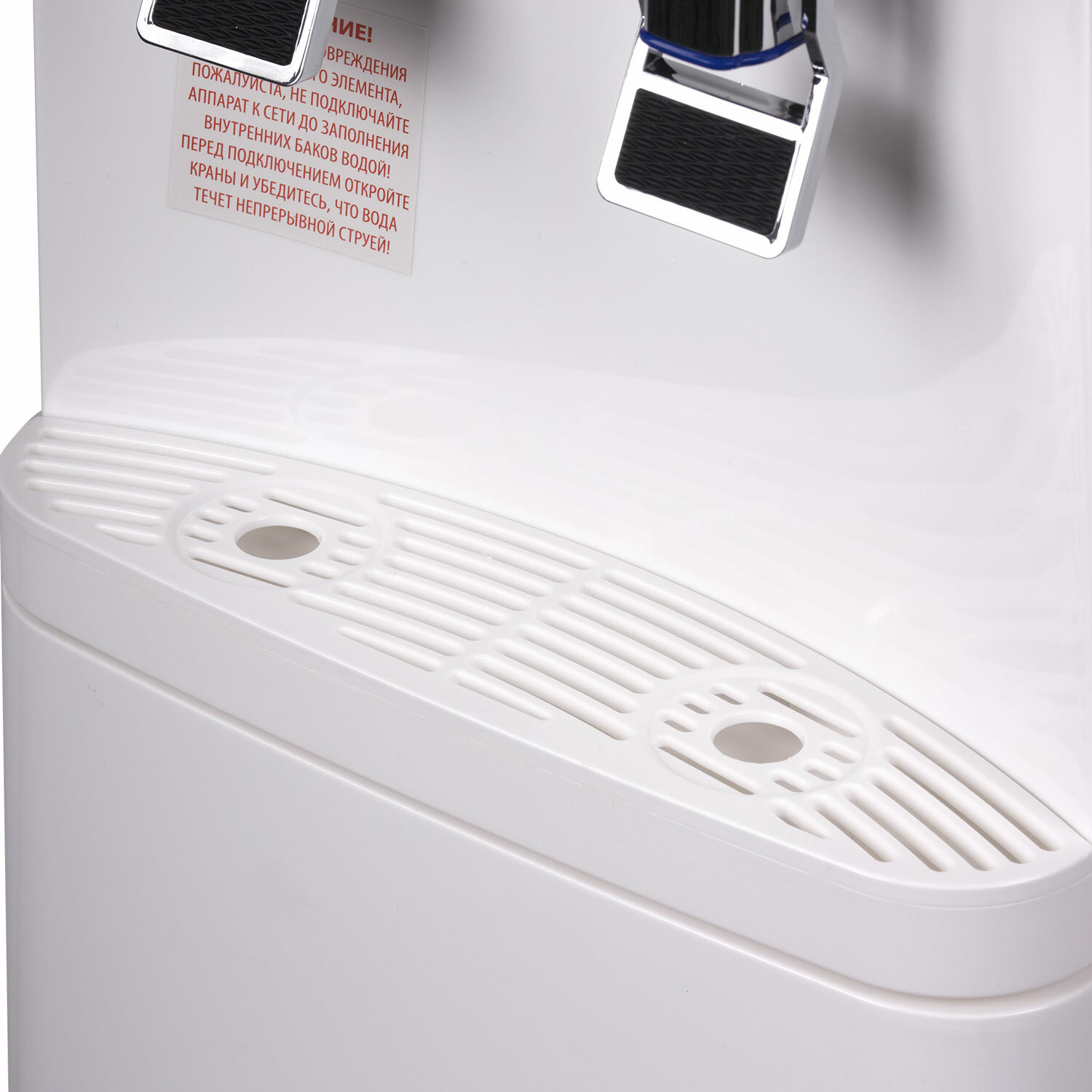 При первом использовании необходимо слить около 1 л воды, чтобы очистить накопительный бак и трубки от производственной пыли. Кулер для воды SONNEN FSE-02BW, напольный, нагрев/охлаждение, НИЖНЯЯ ЗАГРУЗКА, 2 крана, белый, 456170