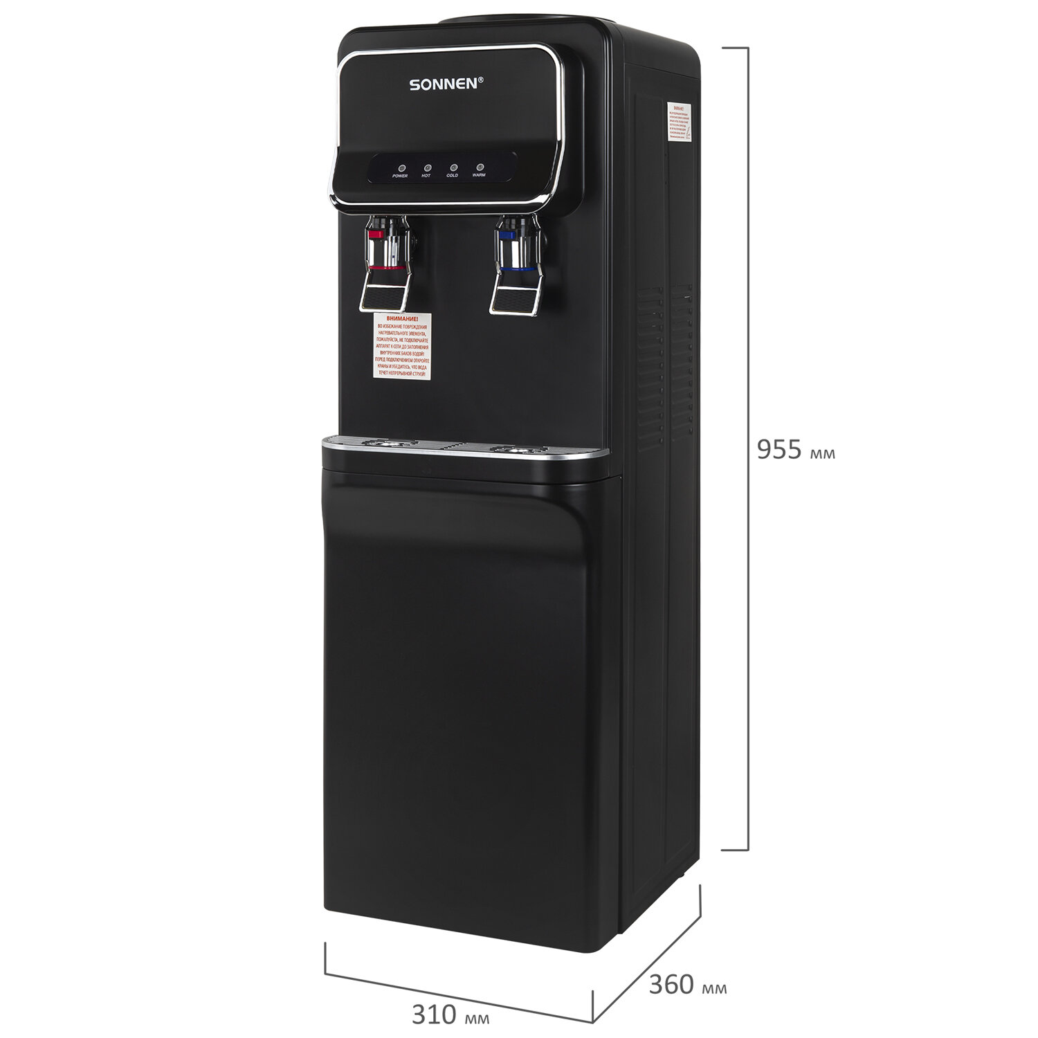 Кулер для воды SONNEN FSE-02WBc, напольный, НАГРЕВ/ОХЛАЖДЕНИЕ ЭЛЕКТРОННОЕ, шкаф, 2 крана, черный, 456168