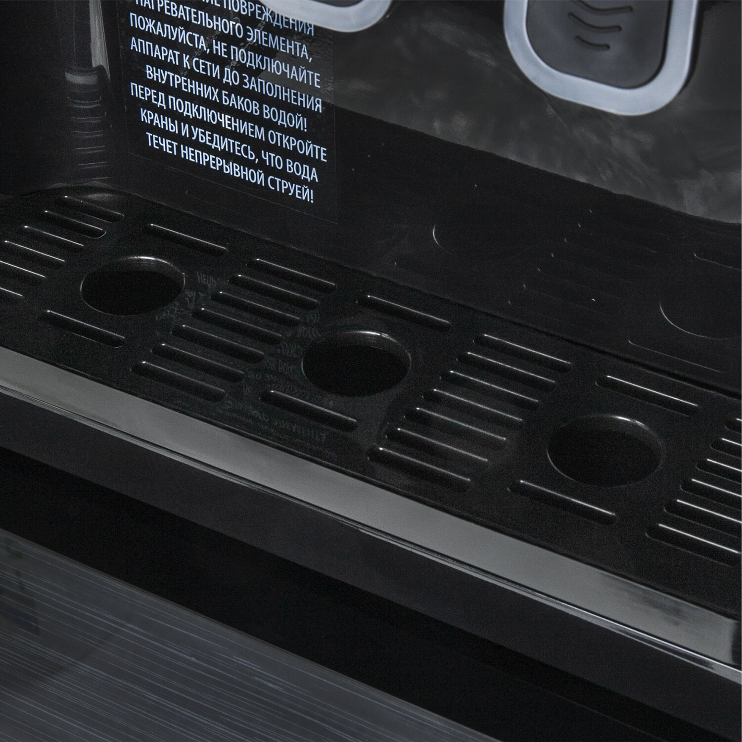 Данная модель оборудована встроенным шкафчиком для хранения бутыли в нижней части корпуса. Перед использованием необходимо поместить туда бутыль и снять с нее крышку. Чтобы очистить накопительный бак и трубки от скопившейся производственной пыли, во время первого использования необходимо слить около 1 л воды.