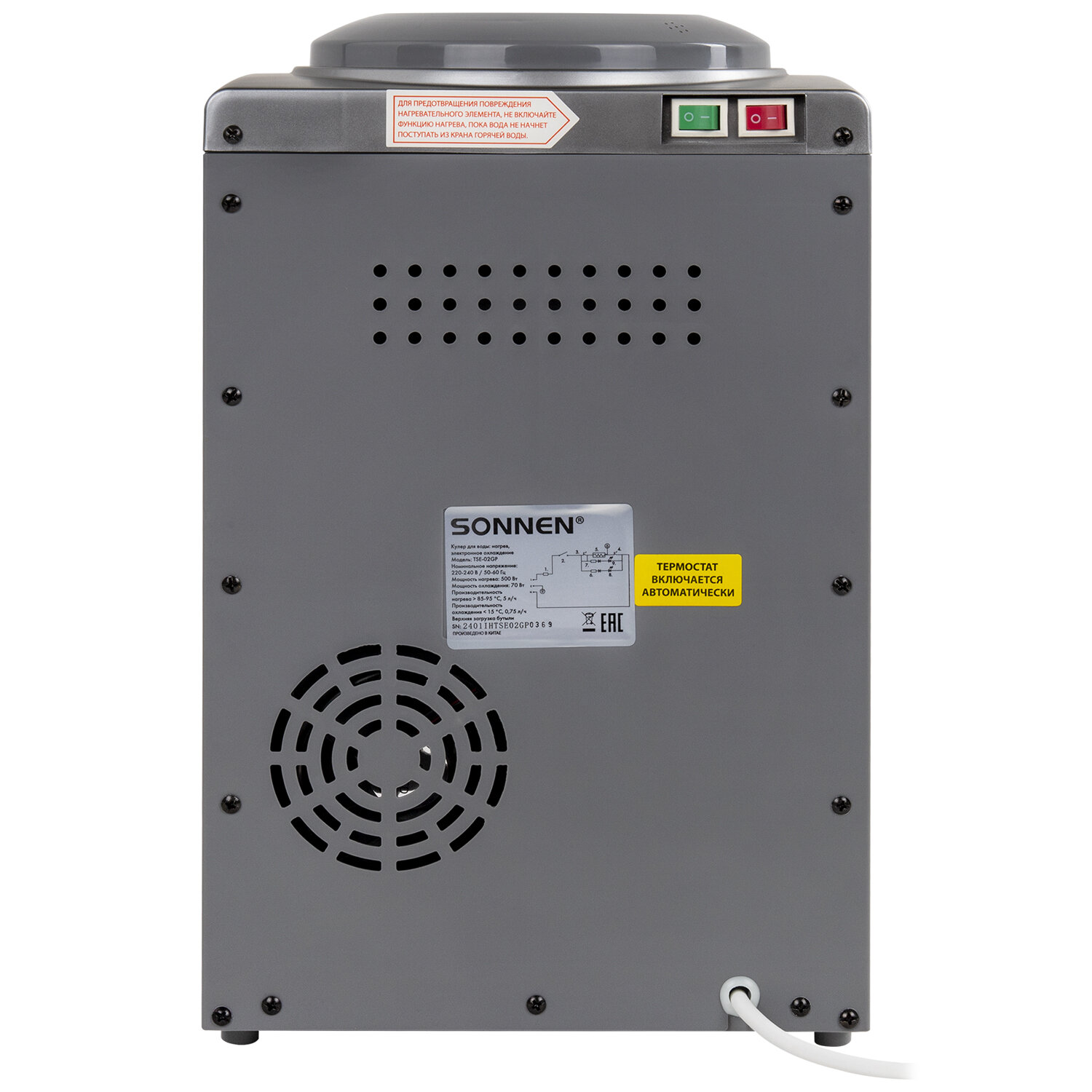 - Кулер для воды SONNEN TSE-02GP, настольный, НАГРЕВ/ОХЛАЖДЕНИЕ ЭЛЕКТРОННОЕ, 2 крана, серебристый, 455745