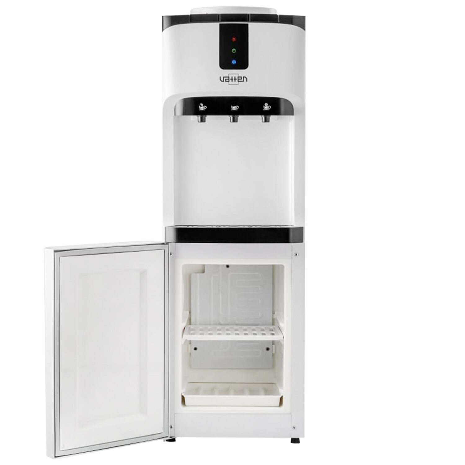 - Кулер для воды VATTEN V02WKB, напольный, НАГРЕВ/ОХЛАЖДЕНИЕ КОМПРЕССОР, холодильник, 3 крана, белый, 0604, УТ-00000604