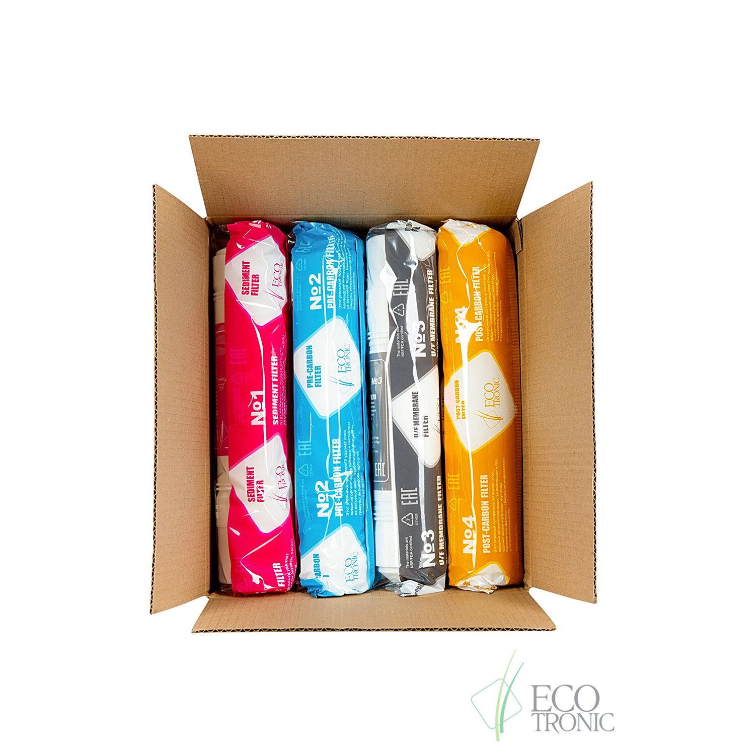 - Фильтры для пурифайеров 12 дюймов, ресурс до 10 000 л, КОМПЛЕКТ 4 шт., ECOTRONIC, 11748