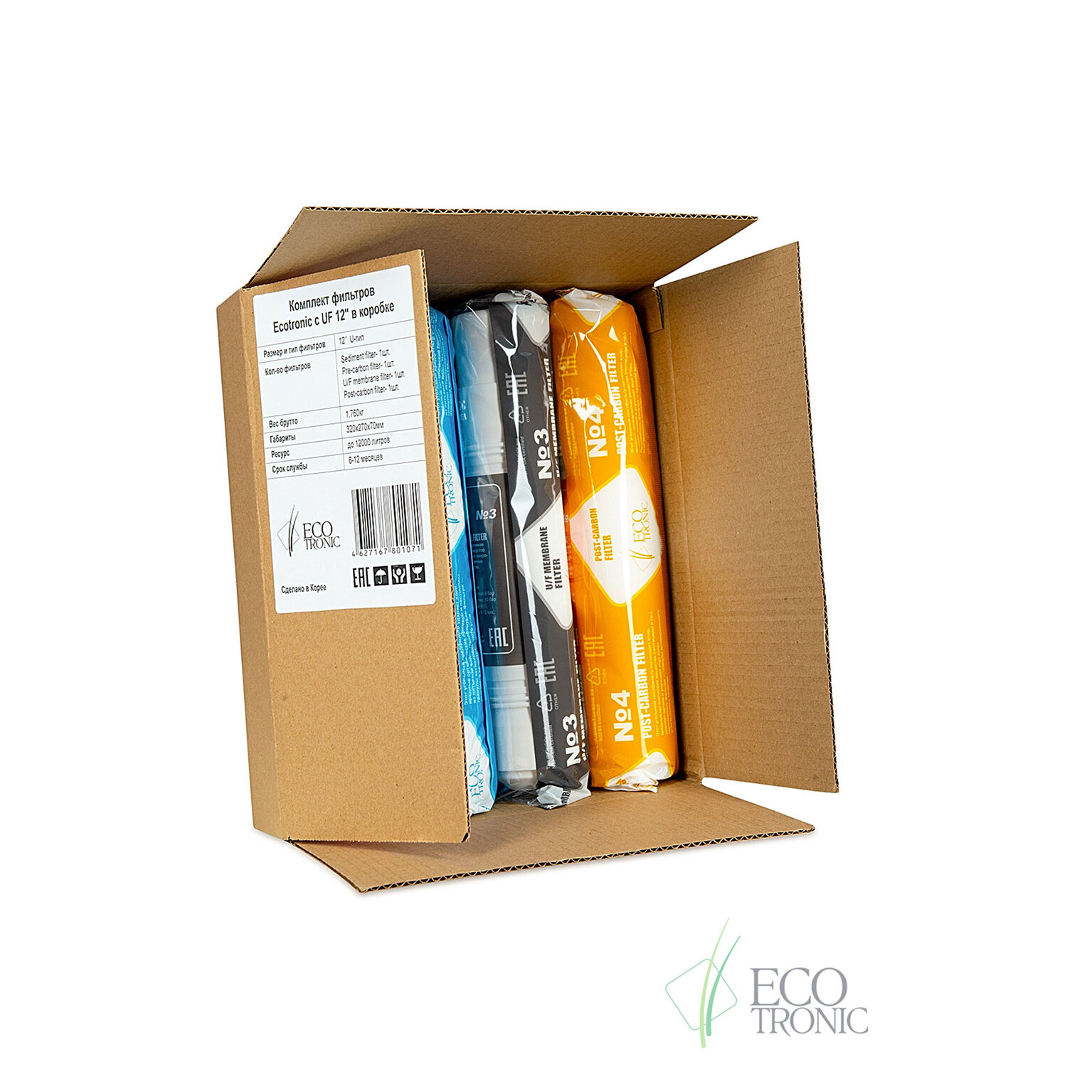 Производитель оставляет за собой право без предварительного уведомления вносить изменения в технические характеристики, комплектацию и конструкцию, не ухудшающие эксплуатационные характеристики изделия. Фильтры для пурифайеров 12 дюймов, ресурс до 10 000 л, КОМПЛЕКТ 4 шт., ECOTRONIC, 11748