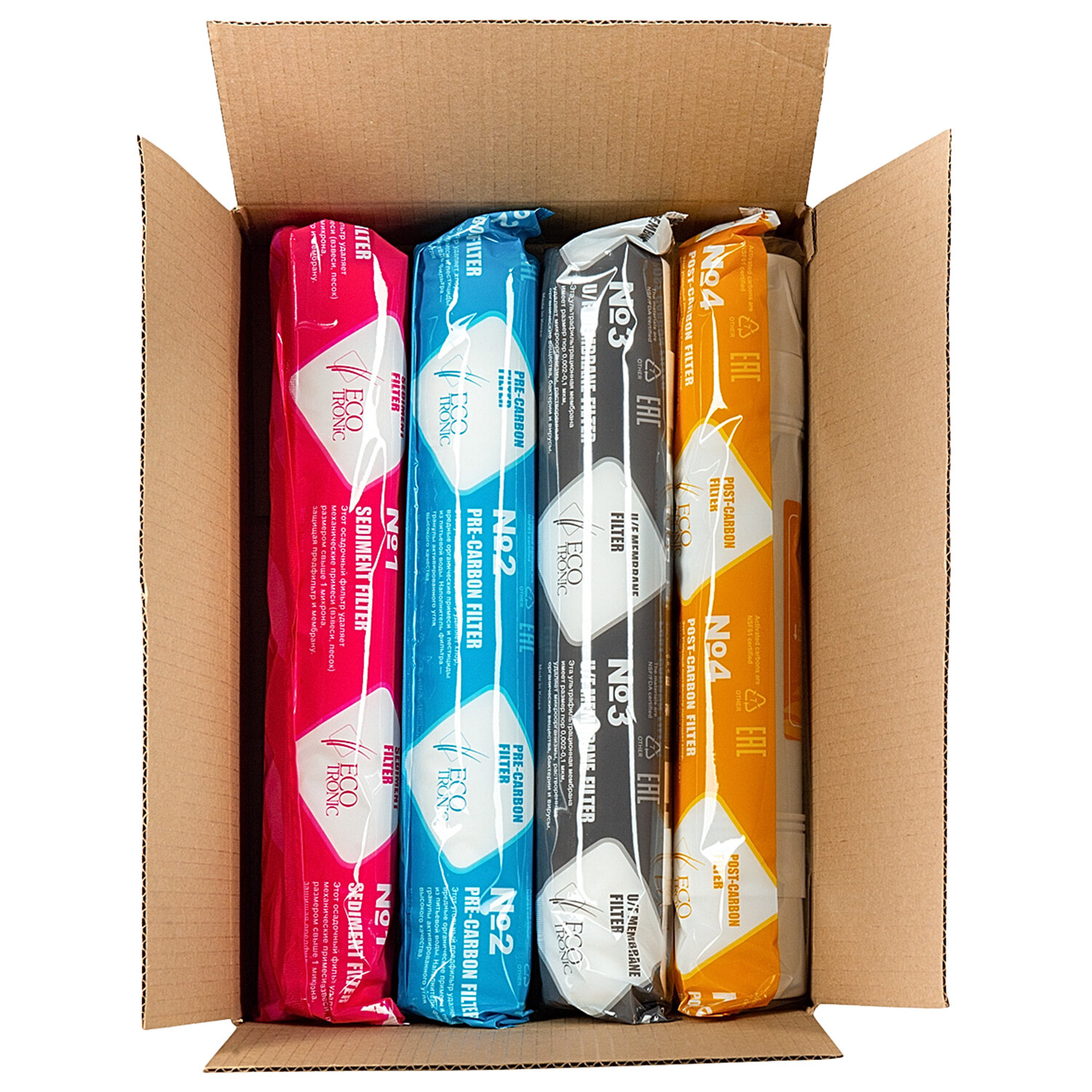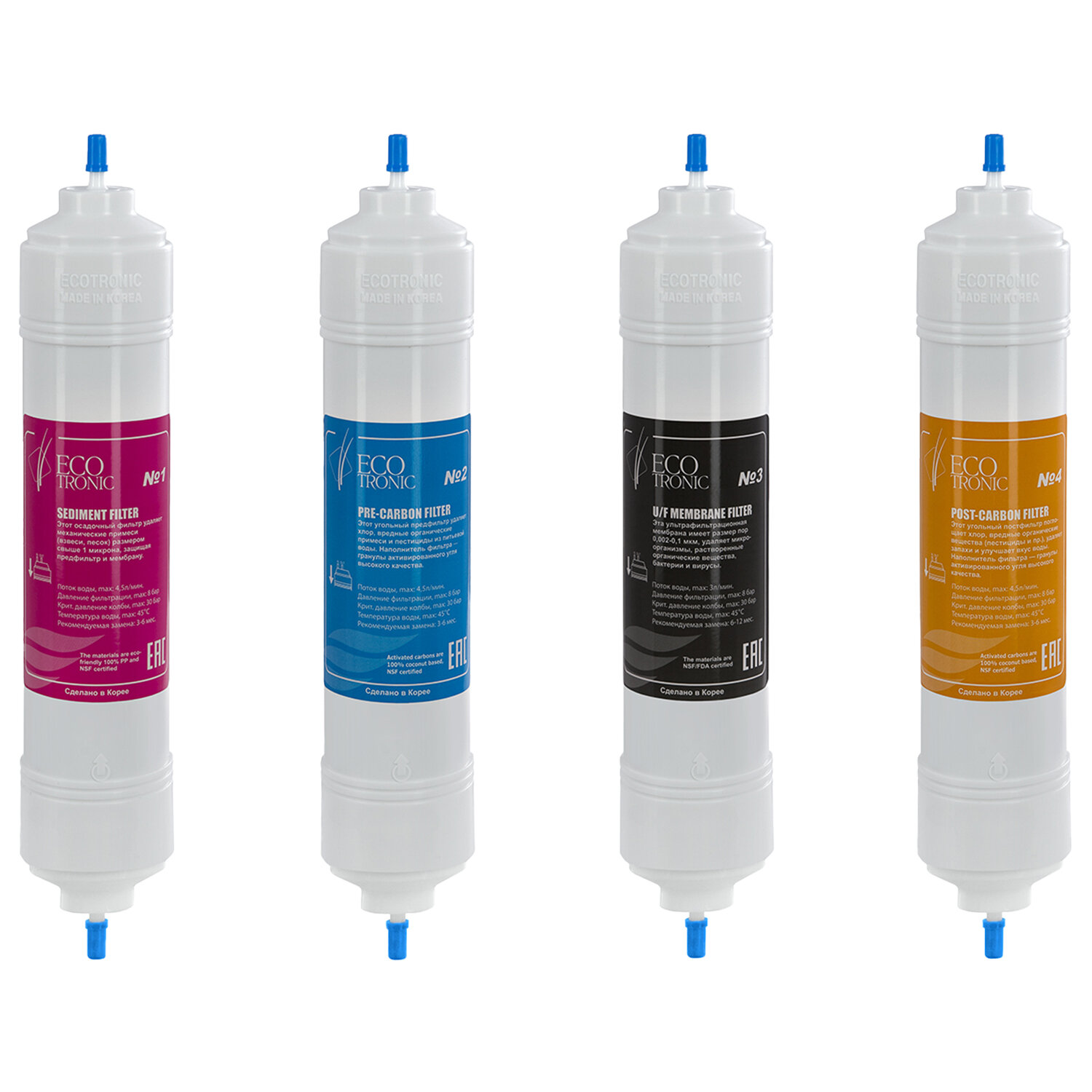 - Фильтры для пурифайеров 14 дюймов, ресурс до 12 000 л, КОМПЛЕКТ 4 шт., ECOTRONIC, 11749