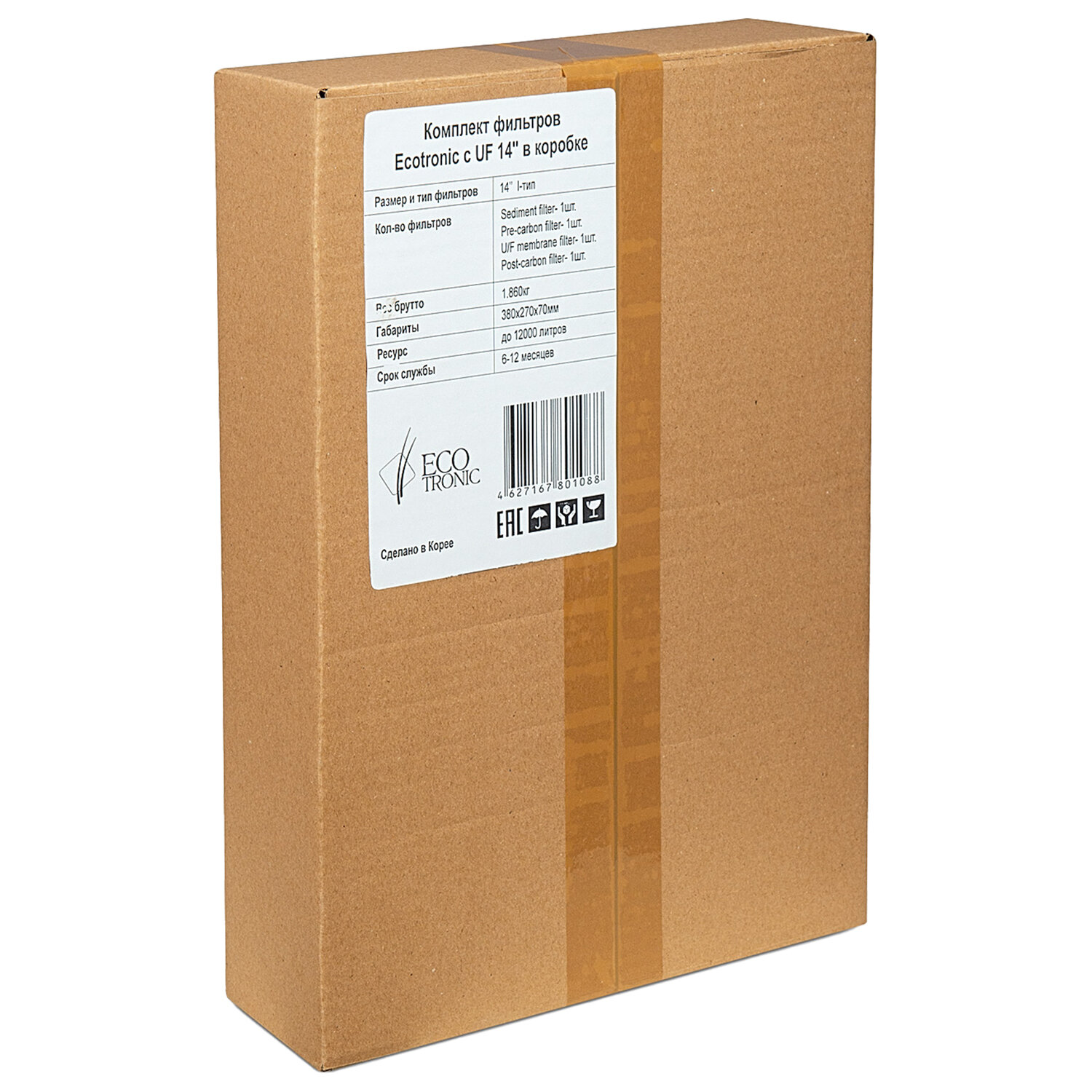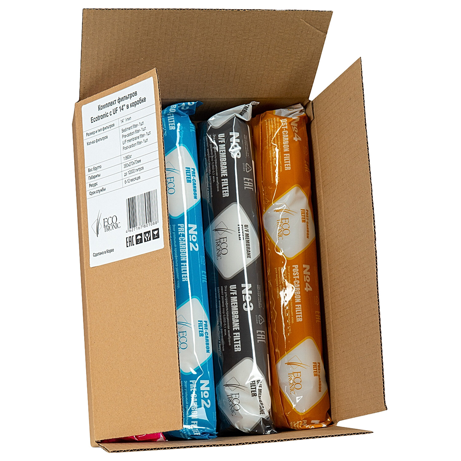 Производитель оставляет за собой право без предварительного уведомления вносить изменения в технические характеристики, комплектацию и конструкцию, не ухудшающие эксплуатационные характеристики изделия. Фильтры для пурифайеров 14 дюймов, ресурс до 12 000 л, КОМПЛЕКТ 4 шт., ECOTRONIC, 11749
