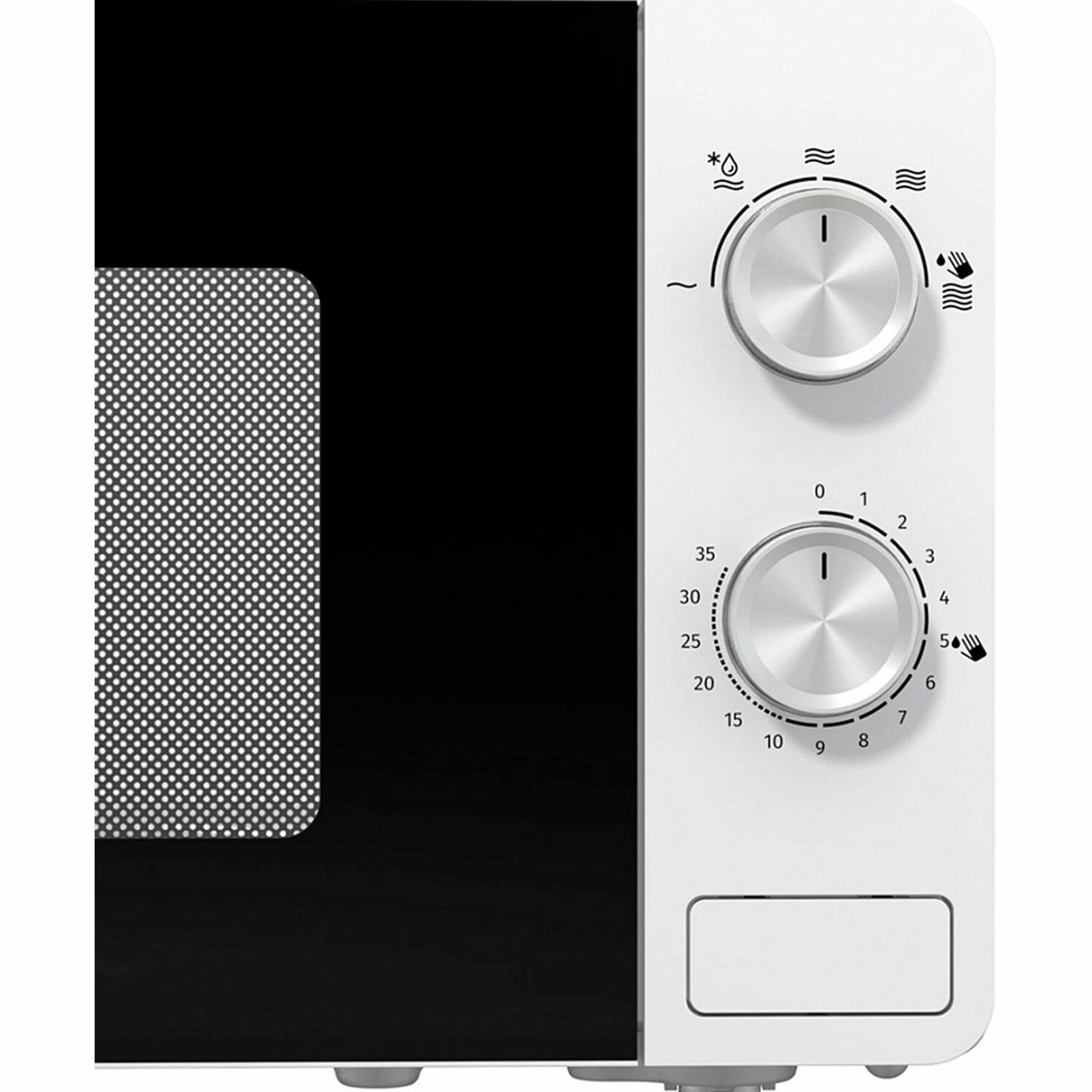 Механическое управление удобно и надёжно. Верхний поворотный регулятор отвечает за выбор уровня мощности (всего 5 вариантов), второй – за установку таймера (до 35 минут). По истечении заданного времени звучит сигнал. Есть функция t;Размораживаниеt;, которая поможет быстро подготовить полуфабрикаты из морозилки к приготовлению. Внутренняя подсветка позволит контролировать процесс, не открывая дверцу.