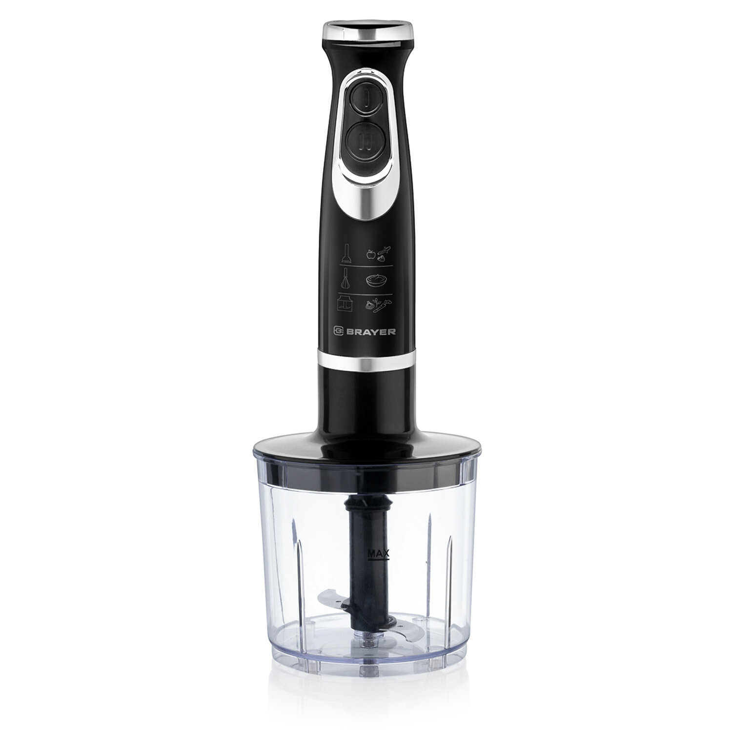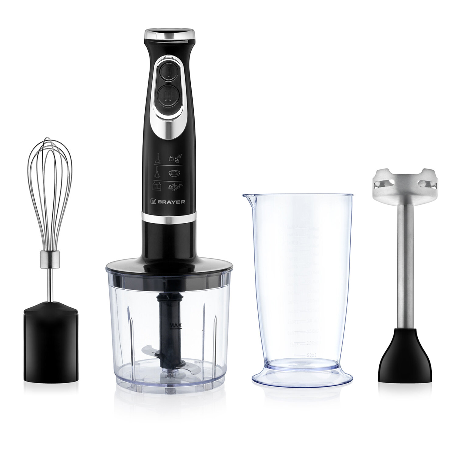 - Блендер погружной BRAYER BR1240, 800 Вт, 2 скорости, 3 насадки, стакан, черный