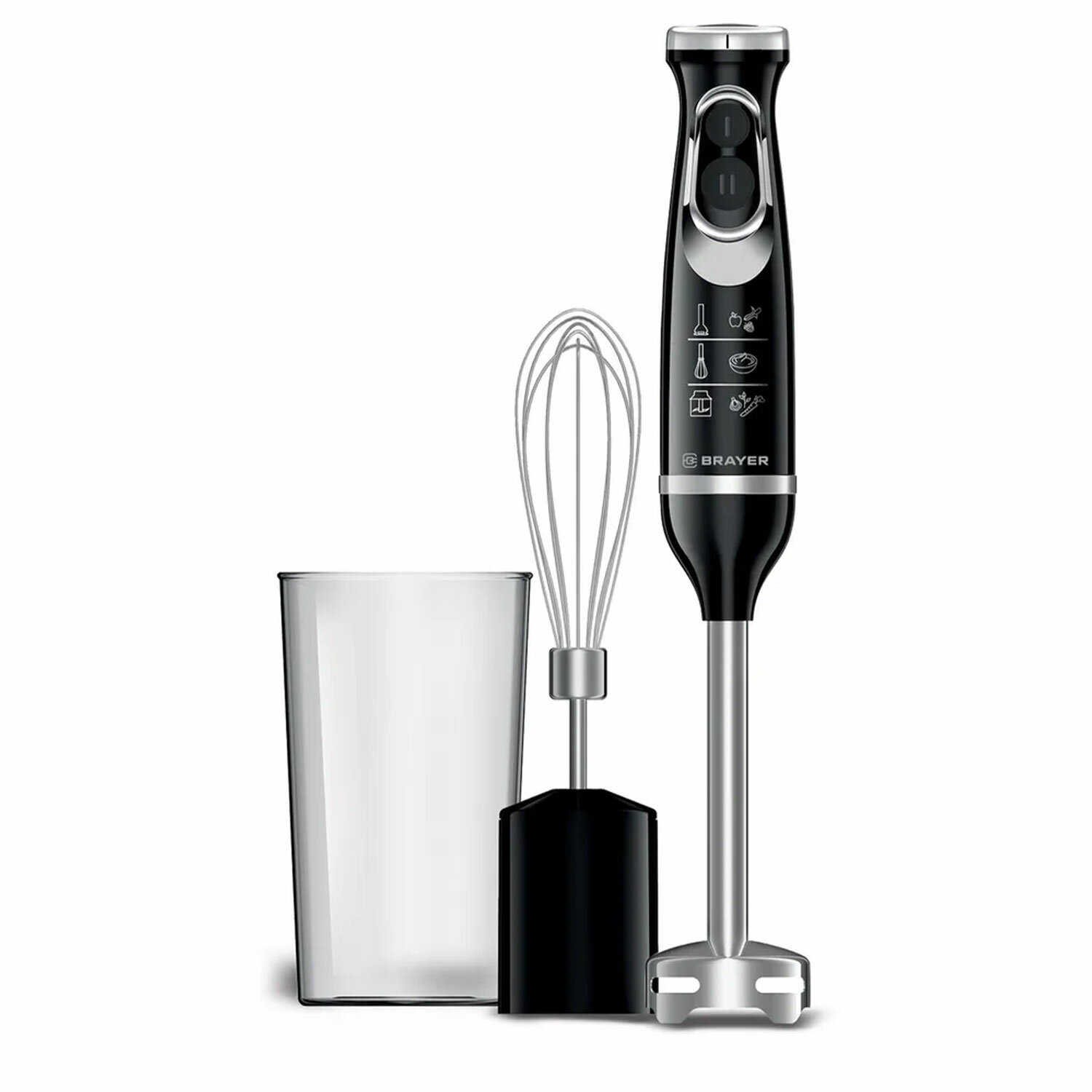 - Блендер погружной BRAYER BR1241, 800 Вт, 2 скорости, 2 насадки, стакан, черный