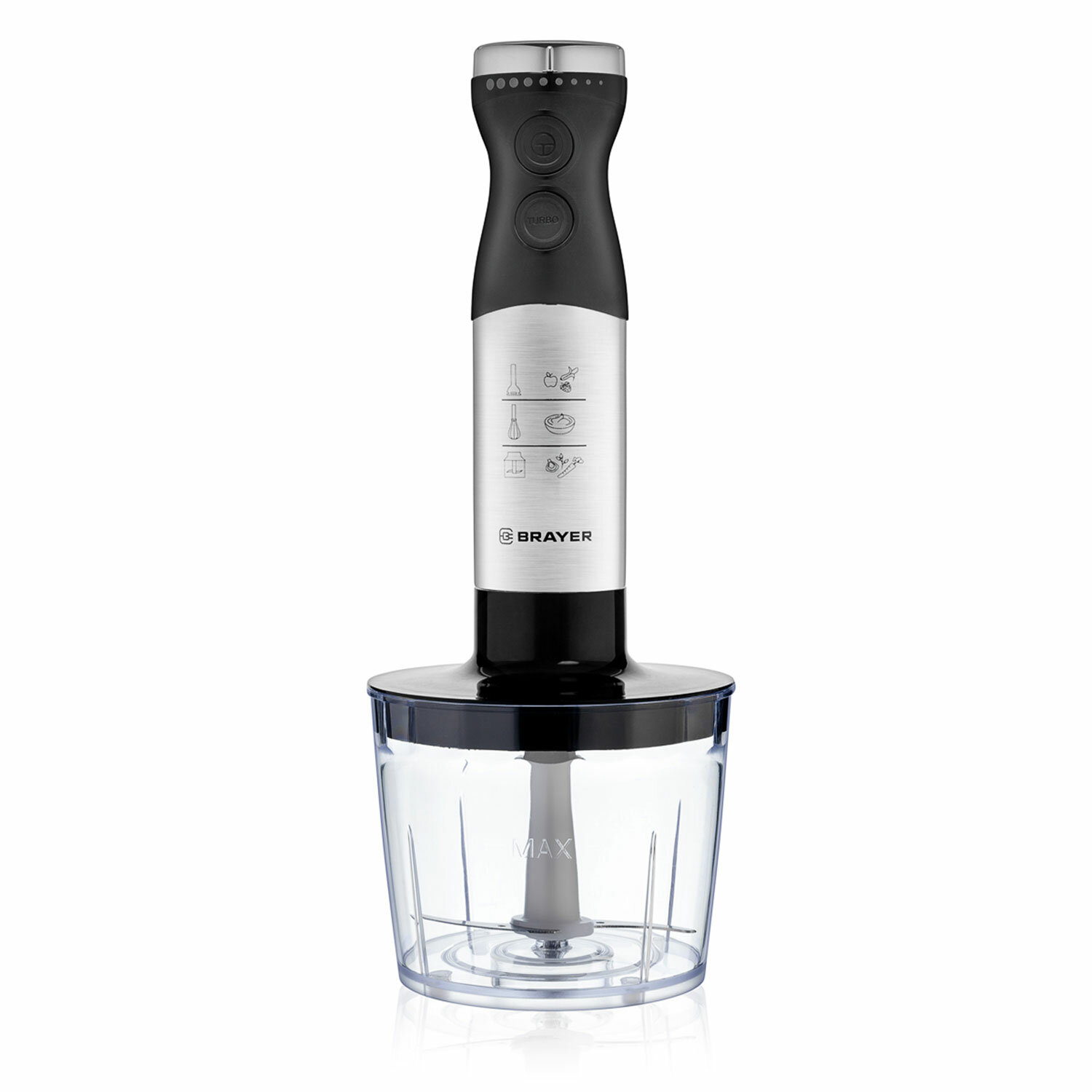 Блендер погружной BRAYER BR1244, 800 Вт, 8 скоростей, 4 насадки, стакан, черный