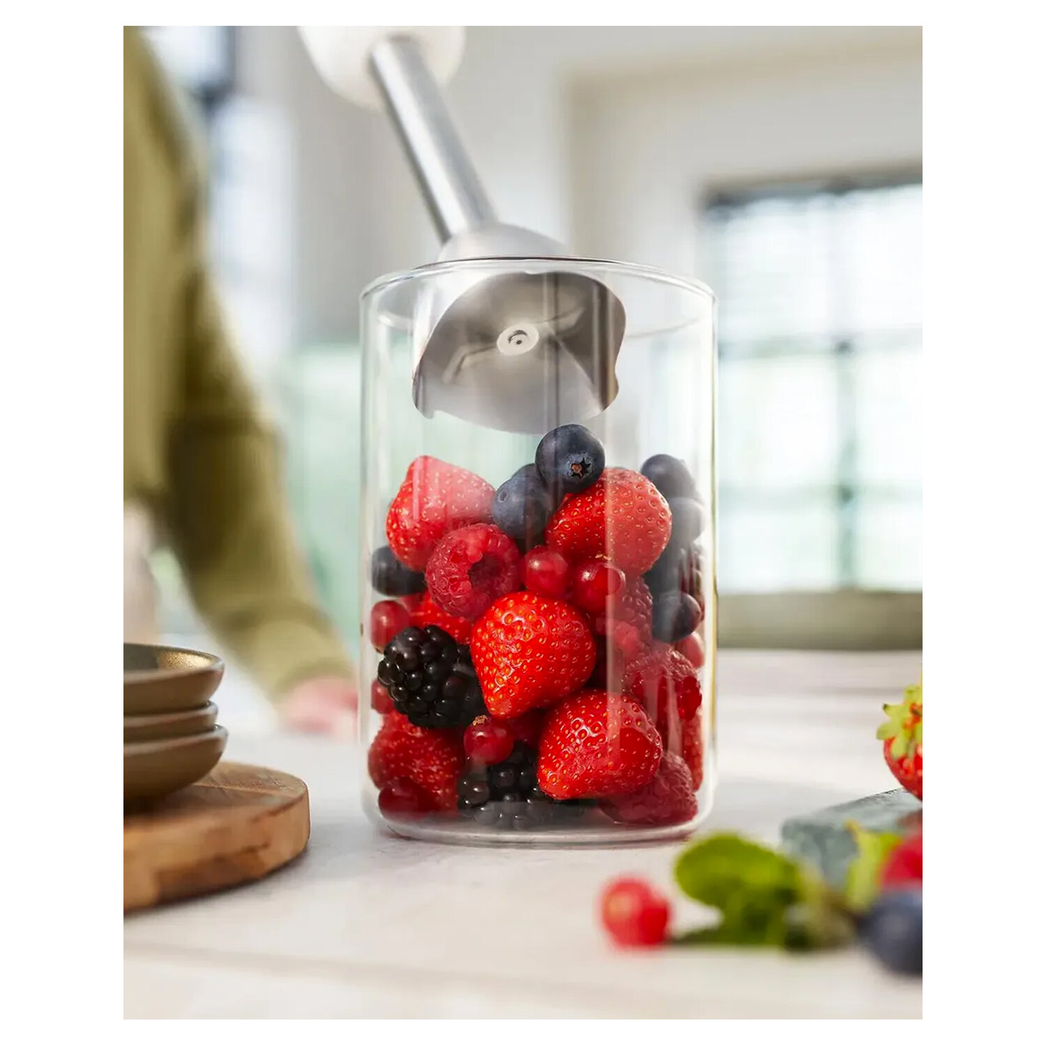 Насадка, предотвращающая разбрызгивание. Особая волнообразная форма нижней части погружной насадки блендера защищает от разбрызгивания во время приготовления блюд, оставляя рабочую поверхность чистой.