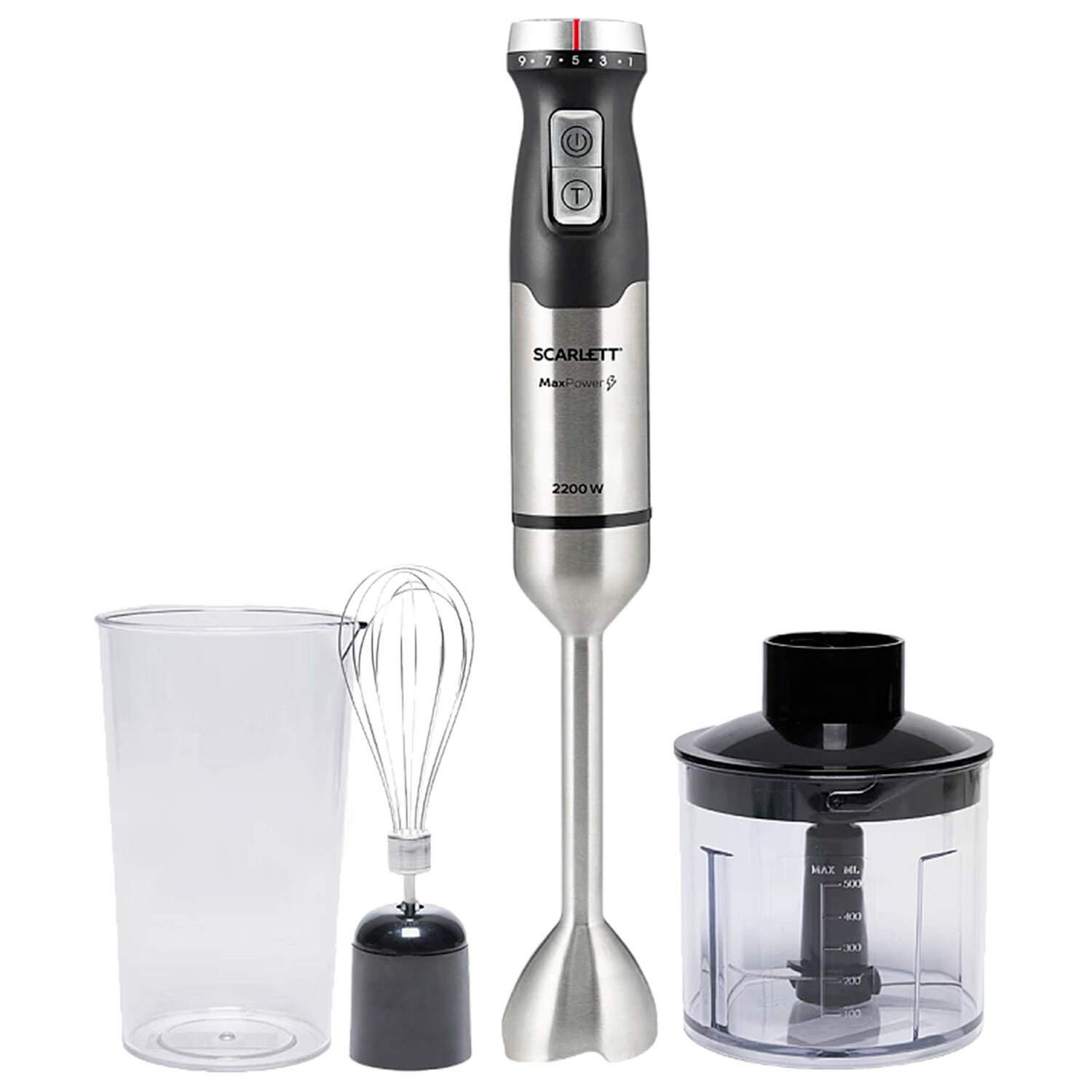 Блендер погружной SCARLETT SC-HB42F40, 2200 Вт, 9 скоростей, 3 насадки, стакан, черный